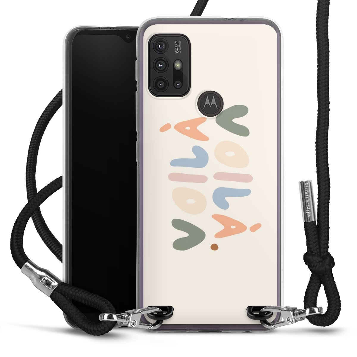 Keep your phone handy at all times, thanks to the flexible silicone case with a textile strap.