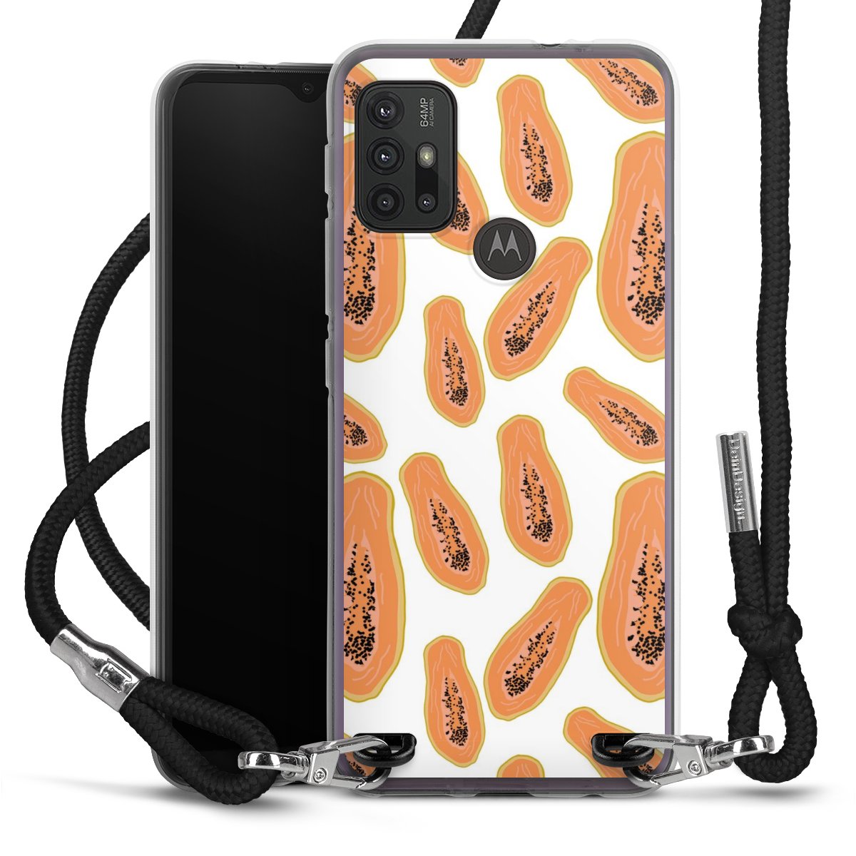For our Carry Case we are using our advanced direct printing technology. The backside is fully printable, the frame is left unprinted. You can order the phone case without print, printed completely or also with a partial print. Choose one of our exclusive, pre-made shop designs or let your creativity shine and create your very own unique design with your pictures, overlays and text.