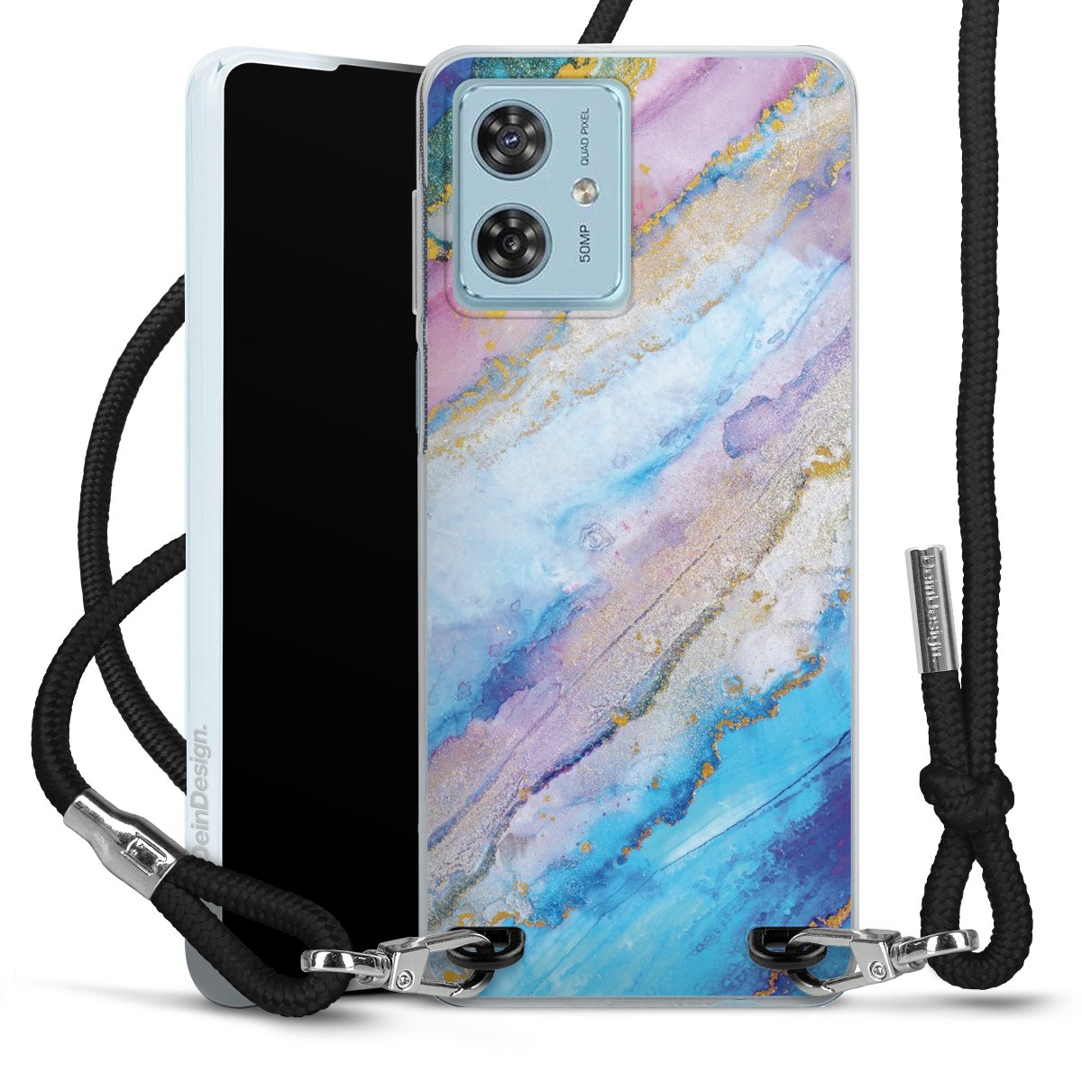 The flexible case is made from a high quality TPU material (thermoplastic Polyurethan). Thanks to its long-lasting and break resistant characteristics, the case is flexible yet consistent in form and has a great grip and feel. The textile strap made from Polyester gives a chic yet casual accent allowing you to carry your phone like a bag or necklace - a practical gadget perfect for your next adventure. The textile strap is about 1.70 meters long and the length can easily be adjusted through the knots. Our Carry Case is available in black, red, pink, grey, mustard, dark green and royal blue. We added a metal fastening to give the product an elegant touch. The ends of the textile strap are covered with metallic end caps to protect them against fraying.