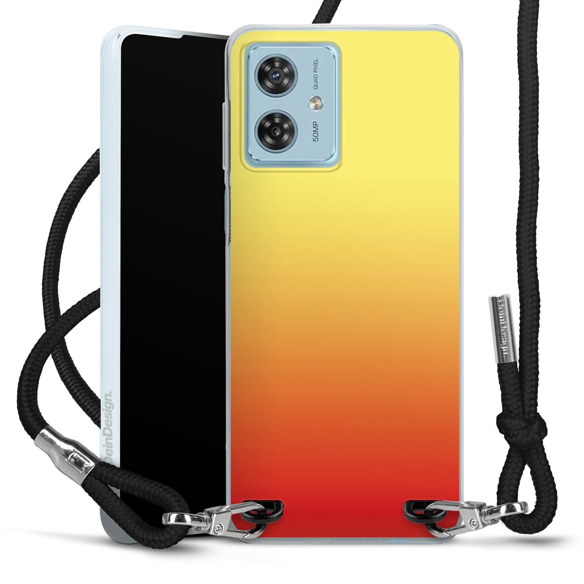 The flexible case is made from a high quality TPU material (thermoplastic Polyurethan). Thanks to its long-lasting and break resistant characteristics, the case is flexible yet consistent in form and has a great grip and feel. The textile strap made from Polyester gives a chic yet casual accent allowing you to carry your phone like a bag or necklace - a practical gadget perfect for your next adventure. The textile strap is about 1.70 meters long and the length can easily be adjusted through the knots. Our Carry Case is available in black, red, pink, grey, mustard, dark green and royal blue. We added a metal fastening to give the product an elegant touch. The ends of the textile strap are covered with metallic end caps to protect them against fraying.