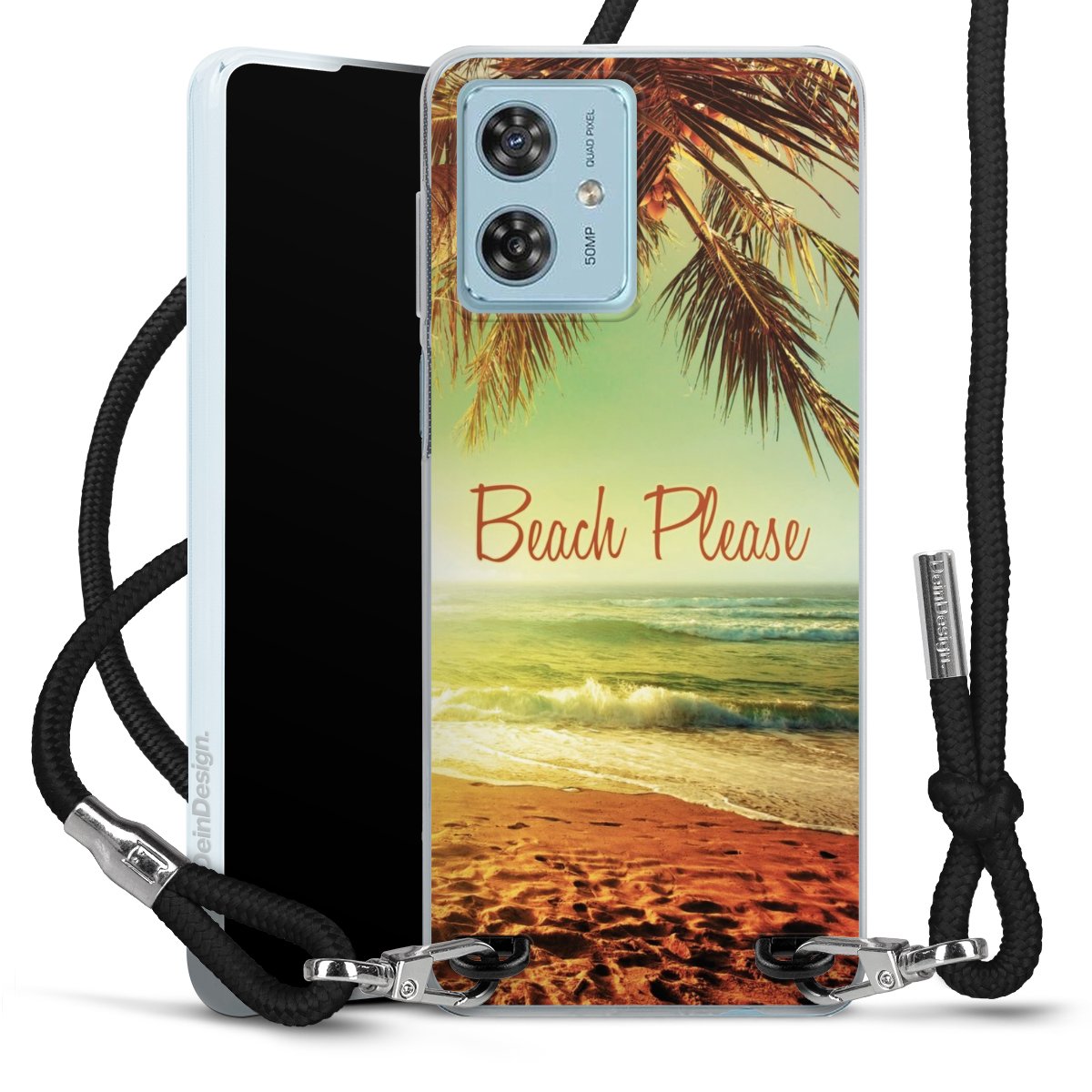 Keep your phone handy at all times, thanks to the flexible silicone case with a textile strap.