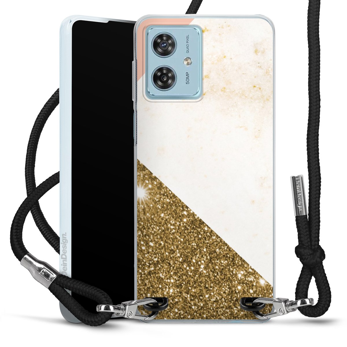 Keep your phone handy at all times, thanks to the flexible silicone case with a textile strap.