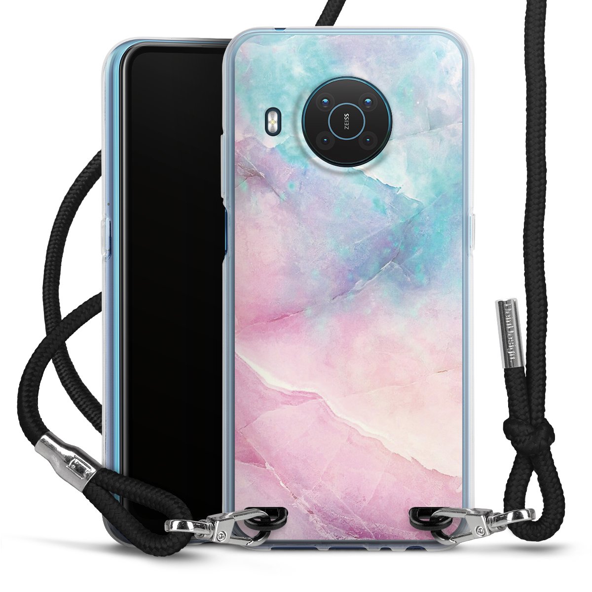 The flexible case is made from a high quality TPU material (thermoplastic Polyurethan). Thanks to its long-lasting and break resistant characteristics, the case is flexible yet consistent in form and has a great grip and feel. The textile strap made from Polyester gives a chic yet casual accent allowing you to carry your phone like a bag or necklace - a practical gadget perfect for your next adventure. The textile strap is about 1.70 meters long and the length can easily be adjusted through the knots. Our Carry Case is available in black, red, pink, grey, mustard, dark green and royal blue. We added a metal fastening to give the product an elegant touch. The ends of the textile strap are covered with metallic end caps to protect them against fraying.