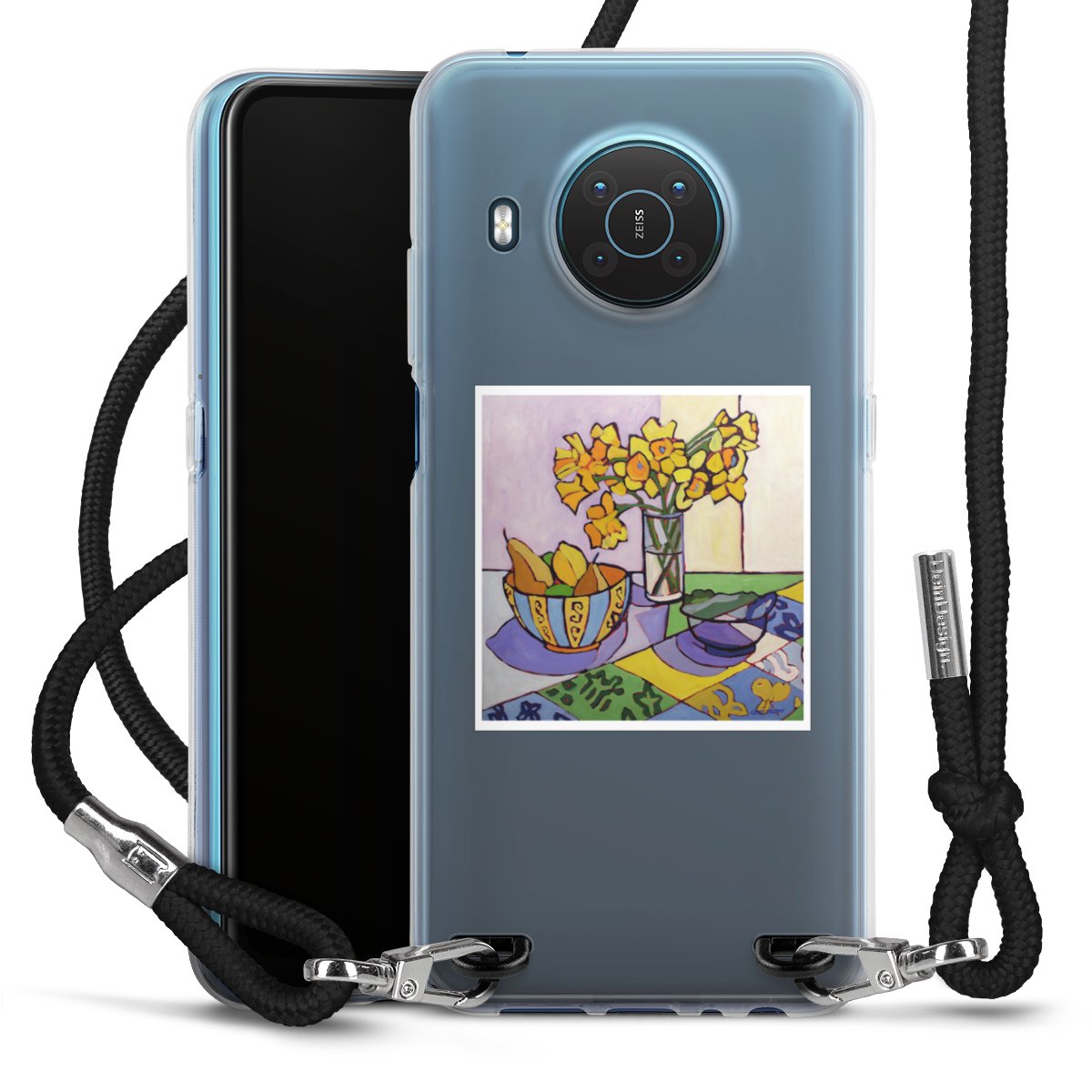 Keep your phone handy at all times, thanks to the flexible silicone case with a textile strap.