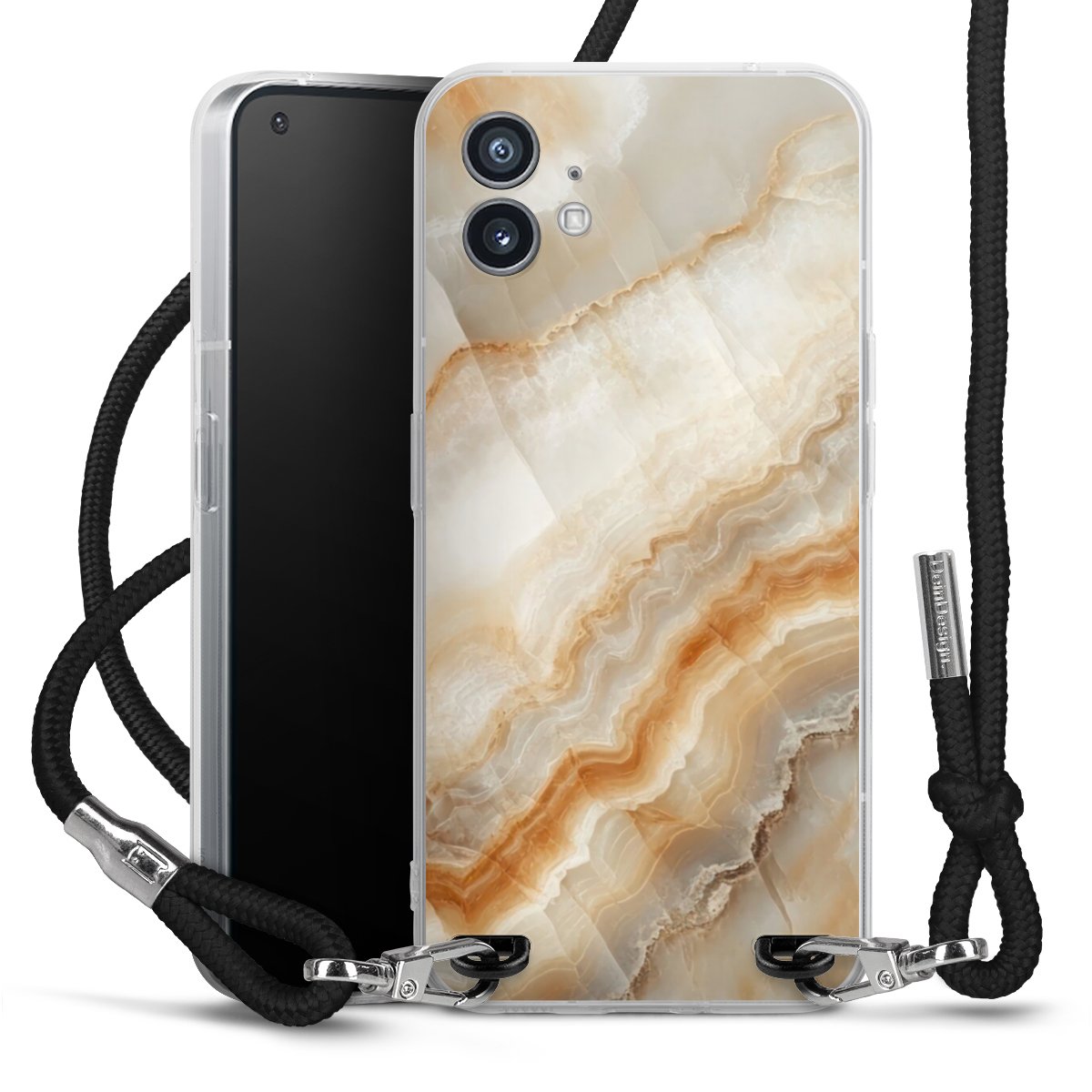 The flexible case is made from a high quality TPU material (thermoplastic Polyurethan). Thanks to its long-lasting and break resistant characteristics, the case is flexible yet consistent in form and has a great grip and feel. The textile strap made from Polyester gives a chic yet casual accent allowing you to carry your phone like a bag or necklace - a practical gadget perfect for your next adventure. The textile strap is about 1.70 meters long and the length can easily be adjusted through the knots. Our Carry Case is available in black, red, pink, grey, mustard, dark green and royal blue. We added a metal fastening to give the product an elegant touch. The ends of the textile strap are covered with metallic end caps to protect them against fraying.