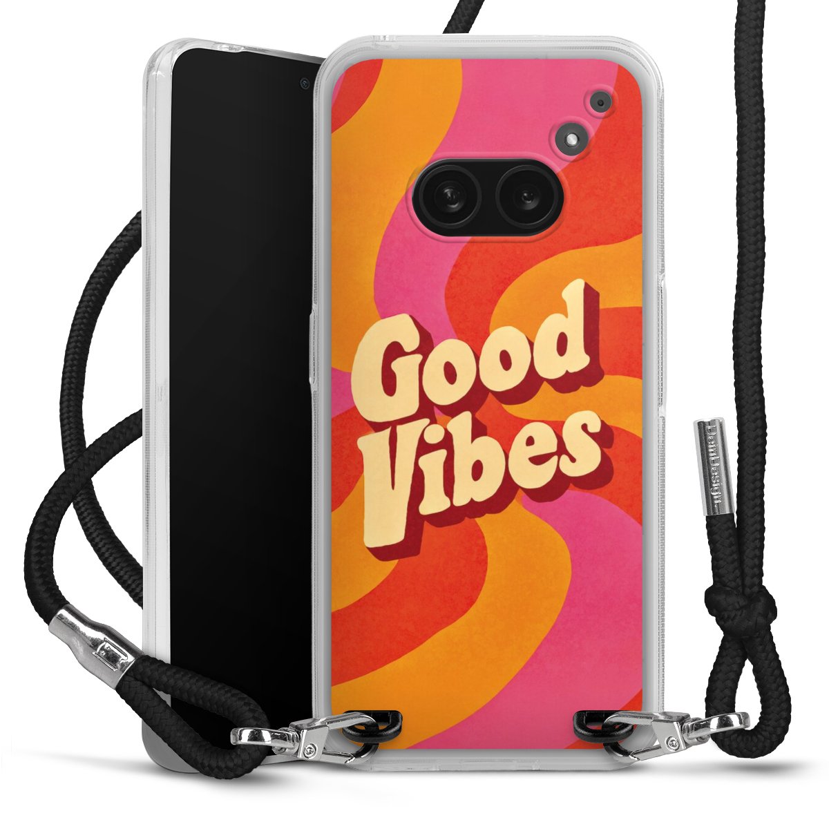 Keep your phone handy at all times, thanks to the flexible silicone case with a textile strap.