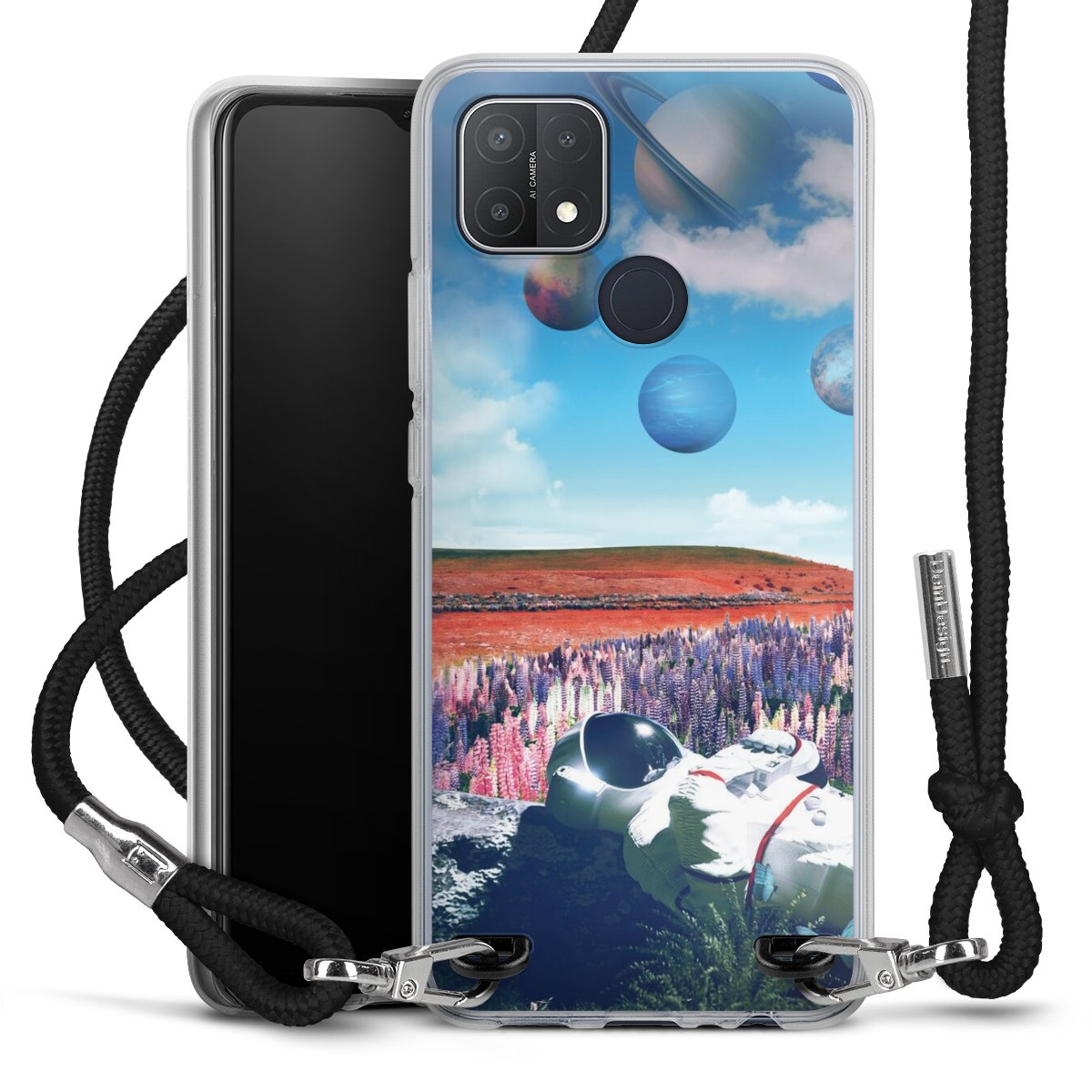 Keep your phone handy at all times, thanks to the flexible silicone case with a textile strap.