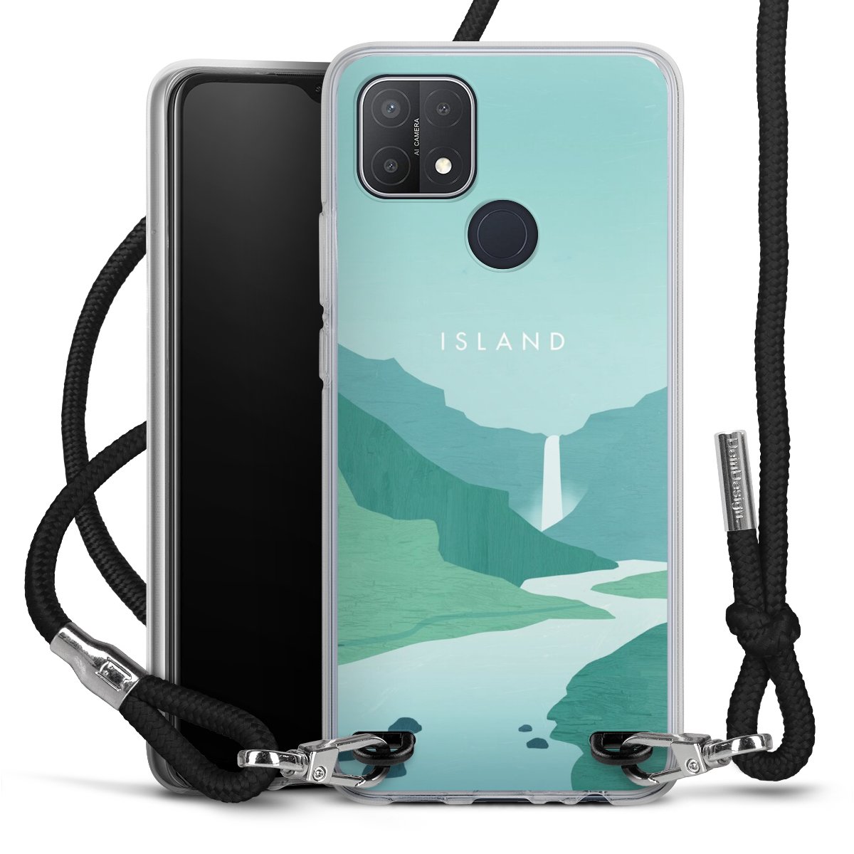 Keep your phone handy at all times, thanks to the flexible silicone case with a textile strap.