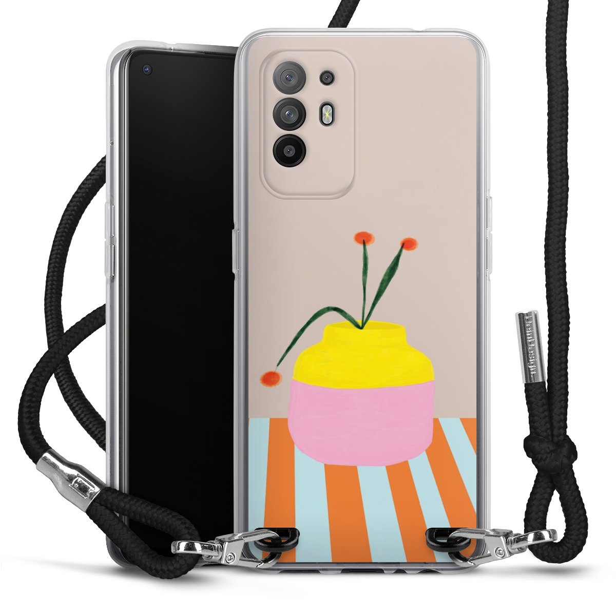 Keep your phone handy at all times, thanks to the flexible silicone case with a textile strap.
