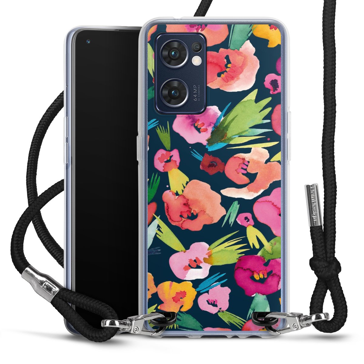 Keep your phone handy at all times, thanks to the flexible silicone case with a textile strap.