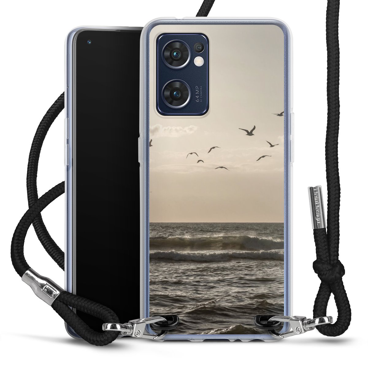 Keep your phone handy at all times, thanks to the flexible silicone case with a textile strap.