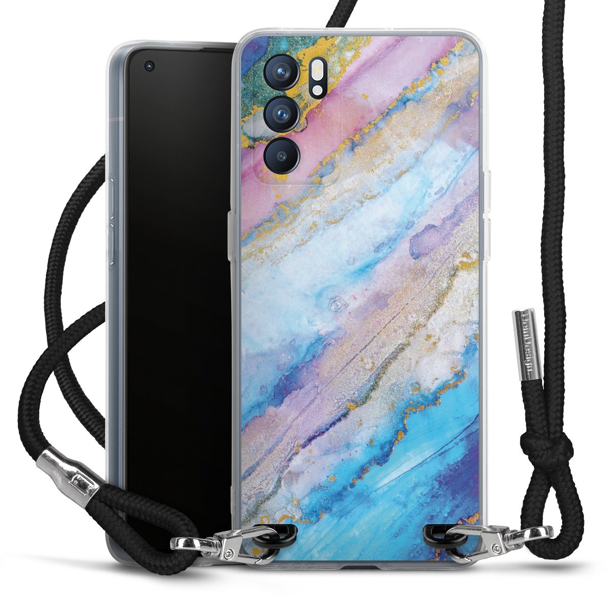 Keep your phone handy at all times, thanks to the flexible silicone case with a textile strap.