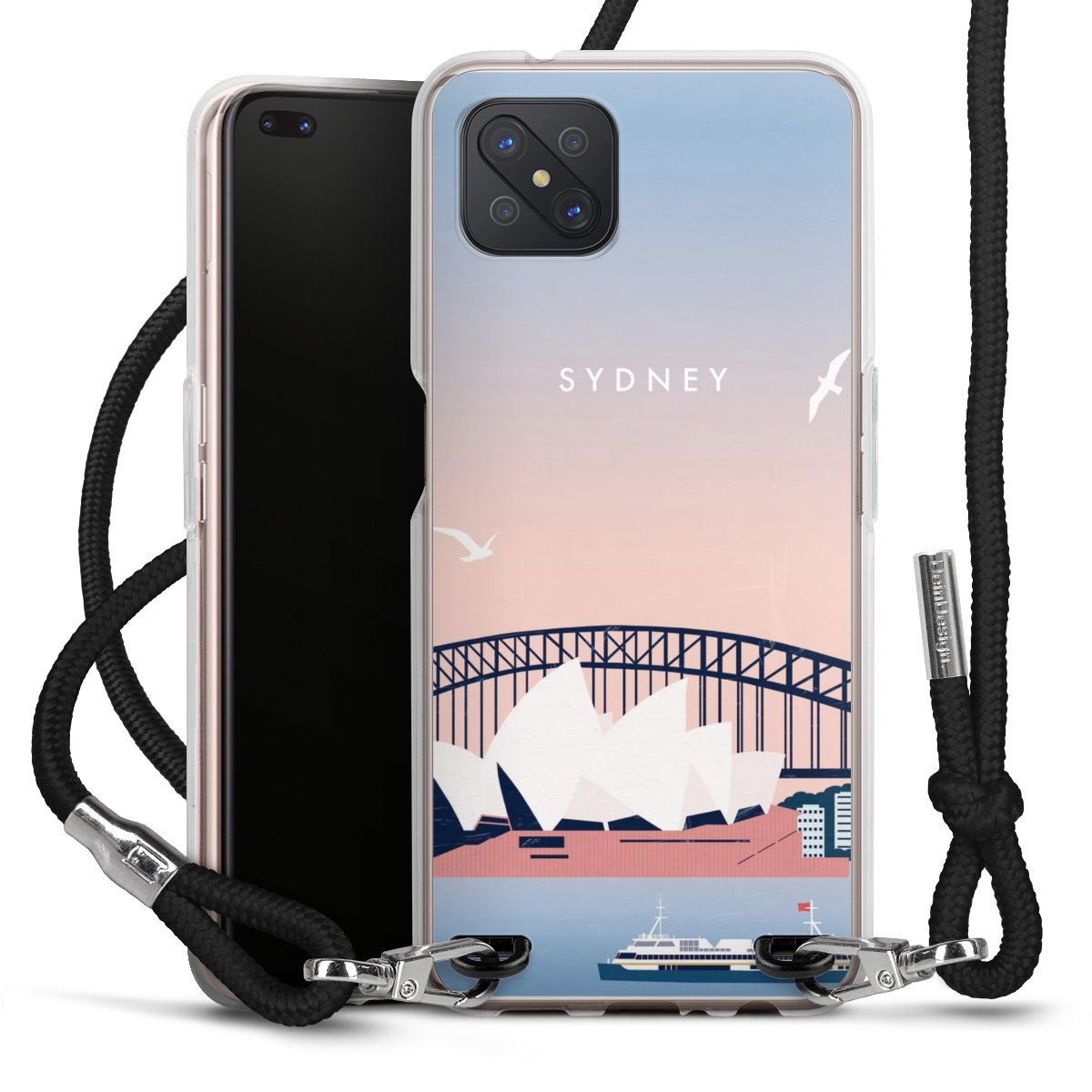 Keep your phone handy at all times, thanks to the flexible silicone case with a textile strap.