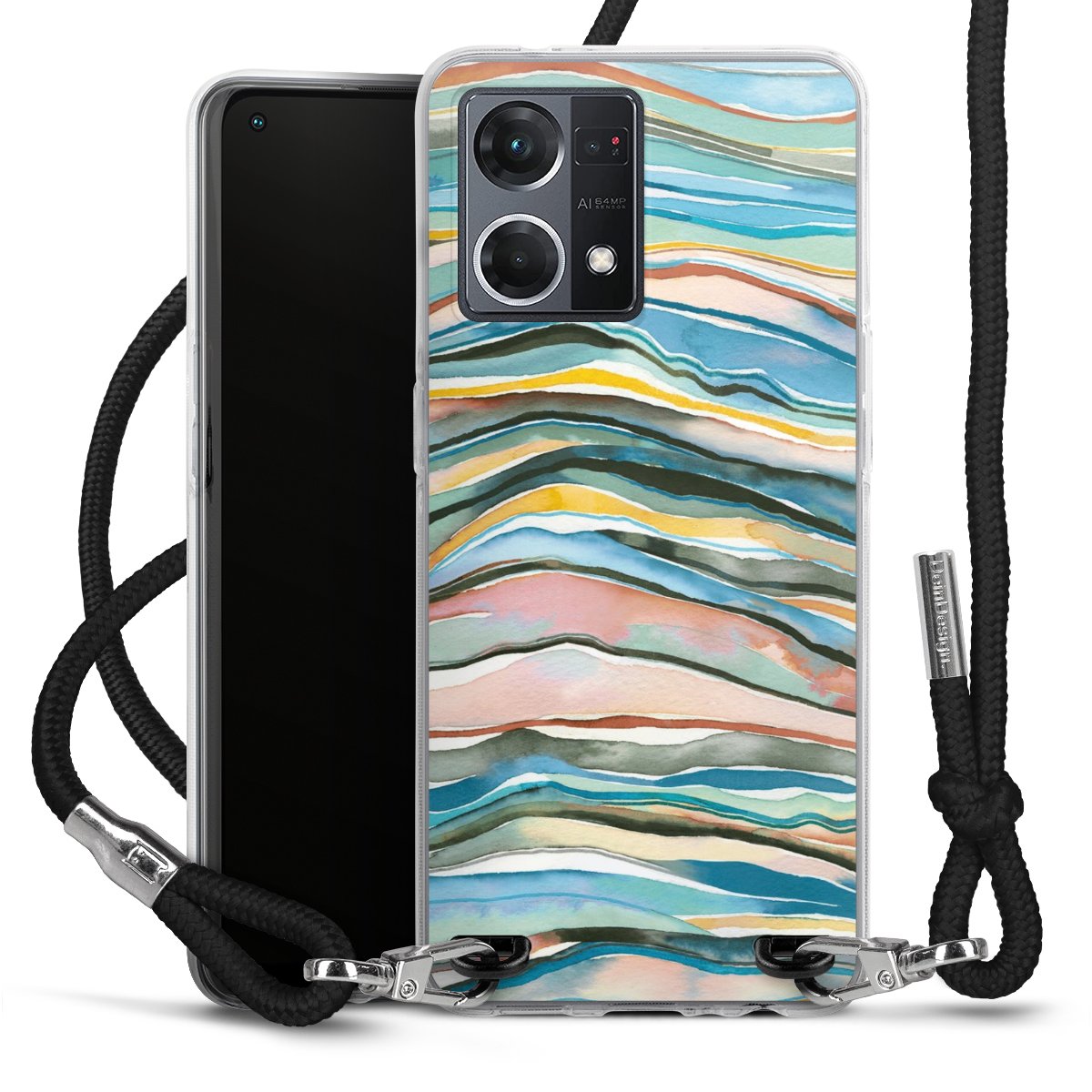 The flexible case is made from a high quality TPU material (thermoplastic Polyurethan). Thanks to its long-lasting and break resistant characteristics, the case is flexible yet consistent in form and has a great grip and feel. The textile strap made from Polyester gives a chic yet casual accent allowing you to carry your phone like a bag or necklace - a practical gadget perfect for your next adventure. The textile strap is about 1.70 meters long and the length can easily be adjusted through the knots. Our Carry Case is available in black, red, pink, grey, mustard, dark green and royal blue. We added a metal fastening to give the product an elegant touch. The ends of the textile strap are covered with metallic end caps to protect them against fraying.