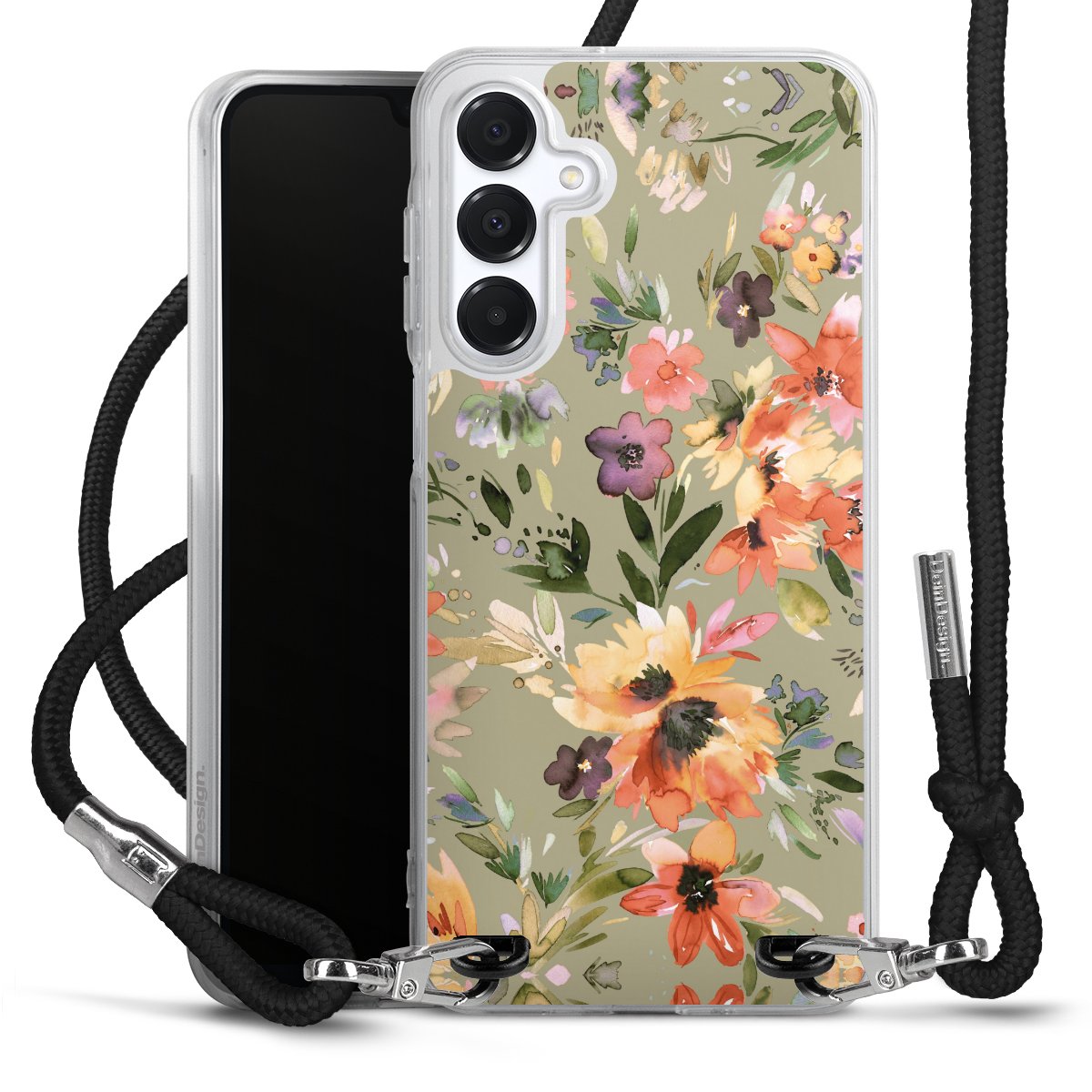 Keep your phone handy at all times, thanks to the flexible silicone case with a textile strap.