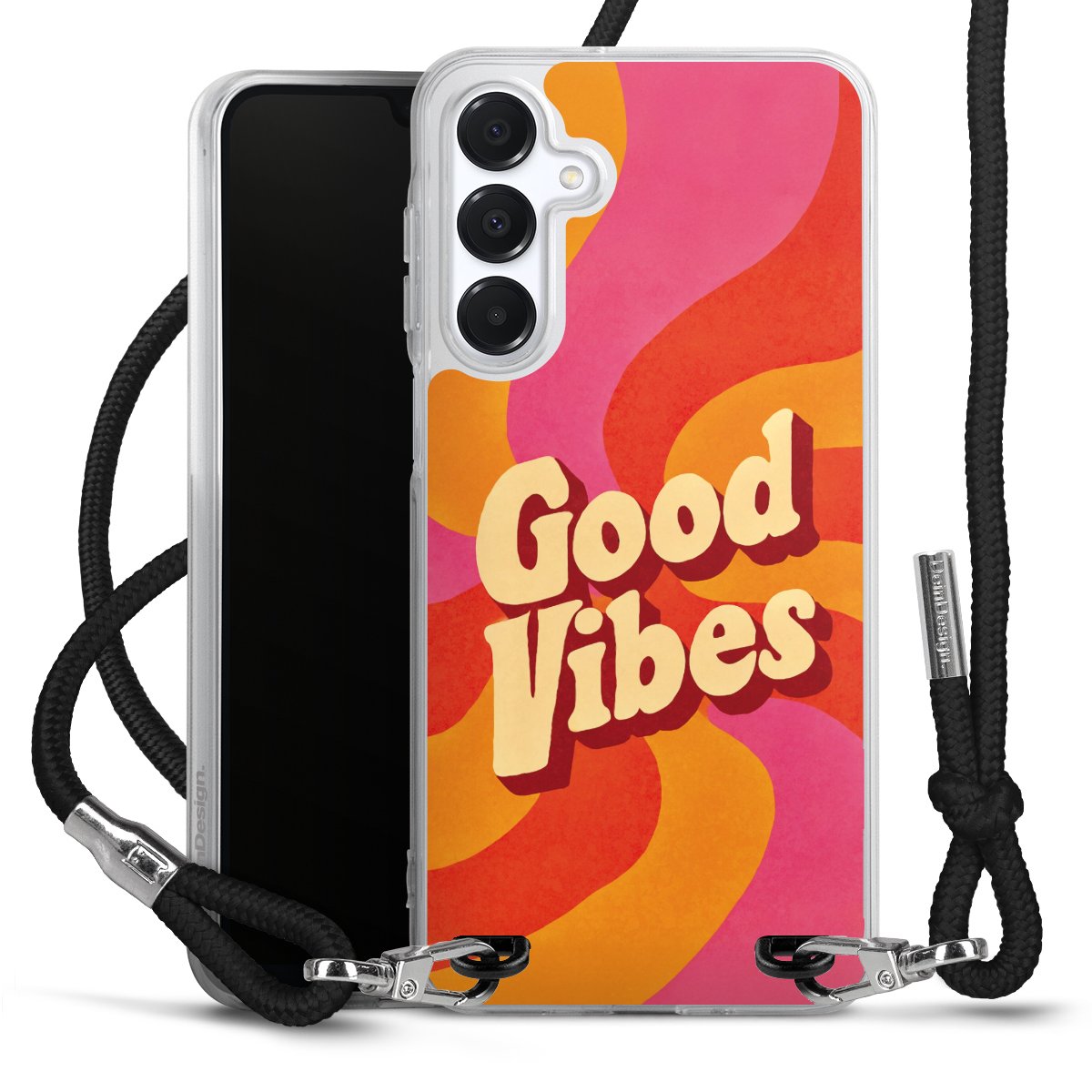 Keep your phone handy at all times, thanks to the flexible silicone case with a textile strap.