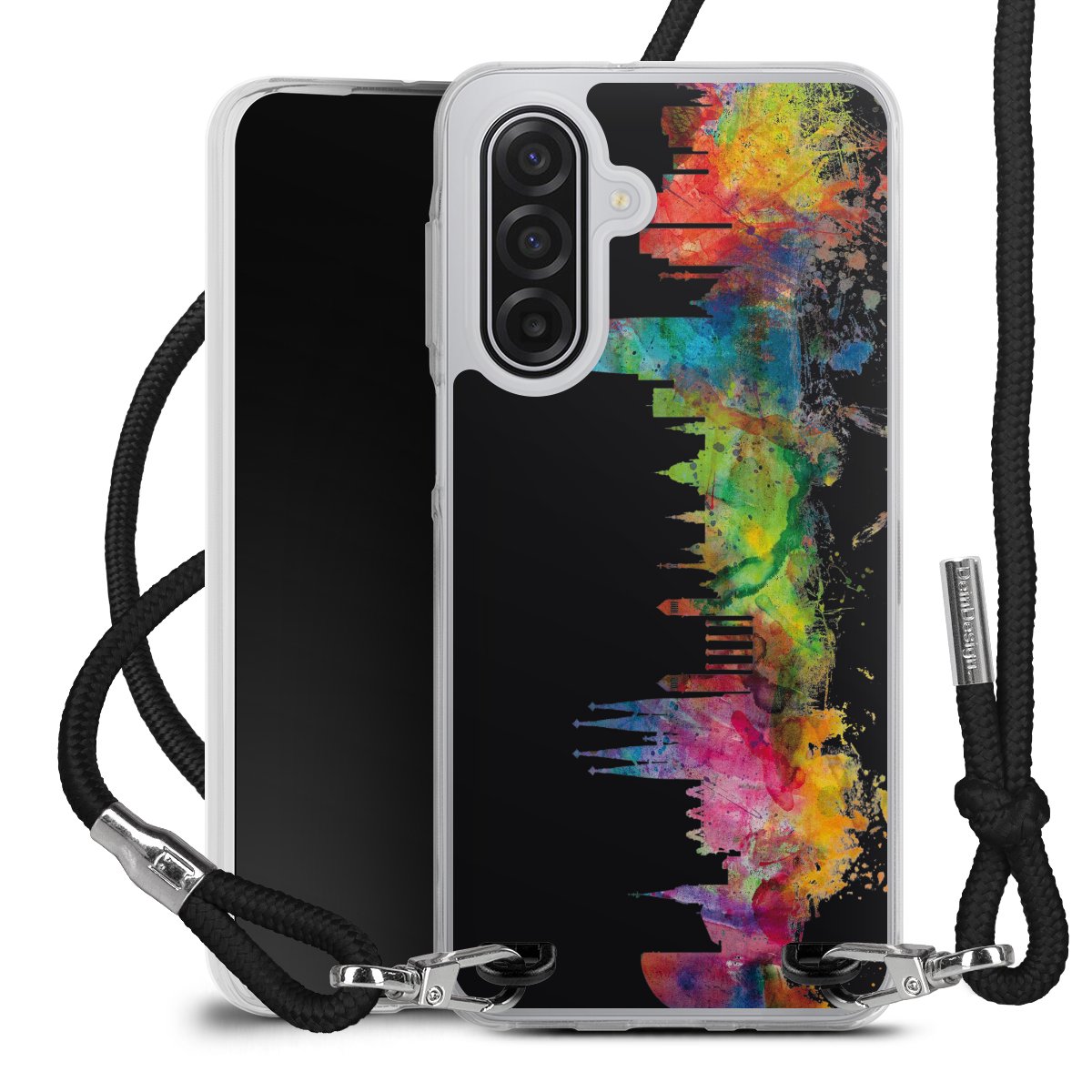 Keep your phone handy at all times, thanks to the flexible silicone case with a textile strap.