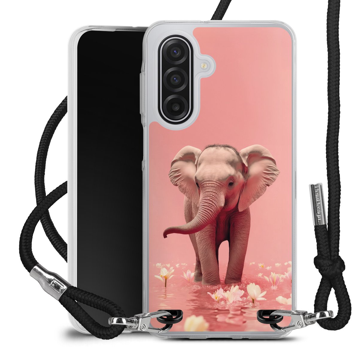 Keep your phone handy at all times, thanks to the flexible silicone case with a textile strap.