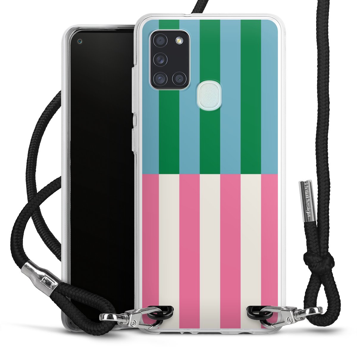 The flexible case is made from a high quality TPU material (thermoplastic Polyurethan). Thanks to its long-lasting and break resistant characteristics, the case is flexible yet consistent in form and has a great grip and feel. The textile strap made from Polyester gives a chic yet casual accent allowing you to carry your phone like a bag or necklace - a practical gadget perfect for your next adventure. The textile strap is about 1.70 meters long and the length can easily be adjusted through the knots. Our Carry Case is available in black, red, pink, grey, mustard, dark green and royal blue. We added a metal fastening to give the product an elegant touch. The ends of the textile strap are covered with metallic end caps to protect them against fraying.