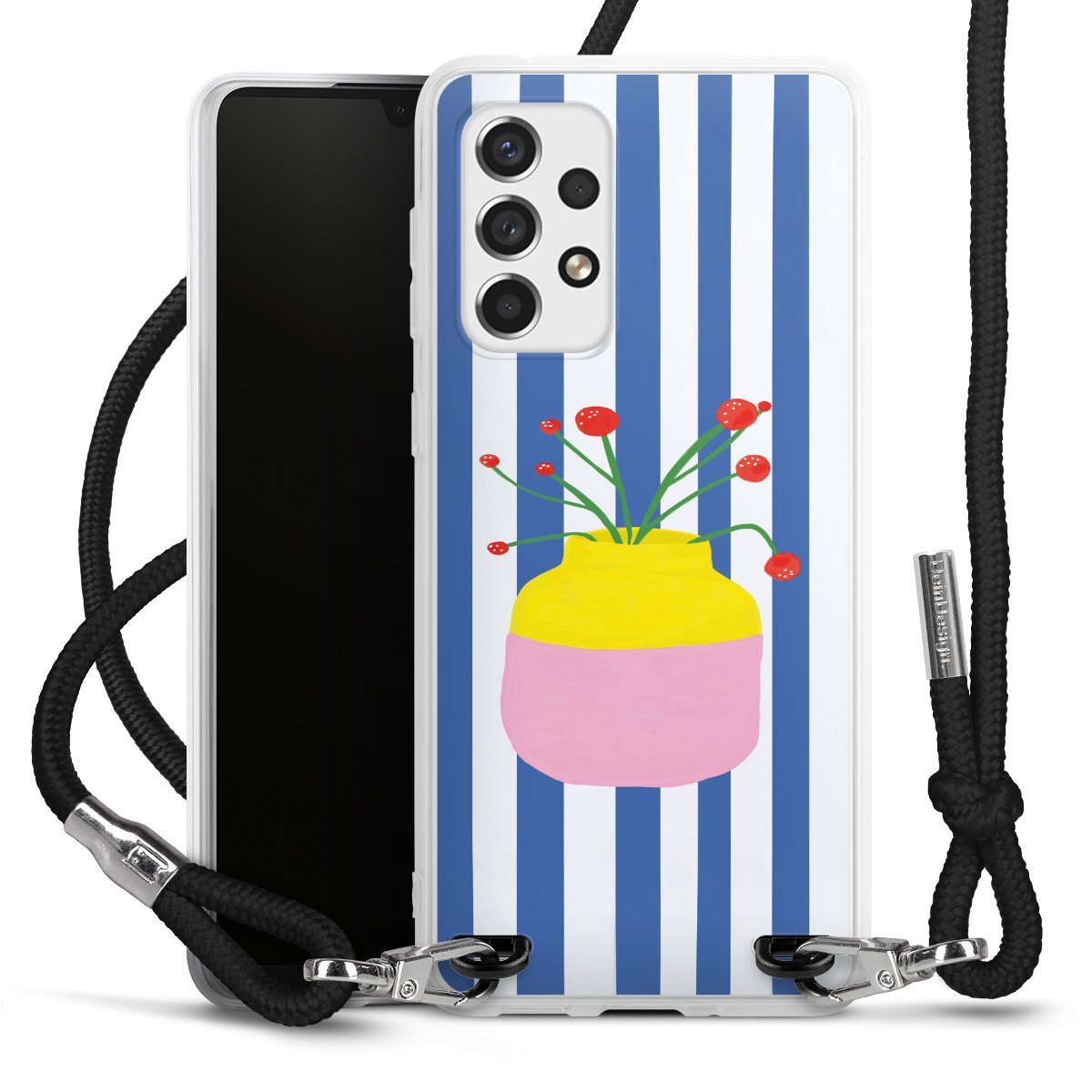 Keep your phone handy at all times, thanks to the flexible silicone case with a textile strap.