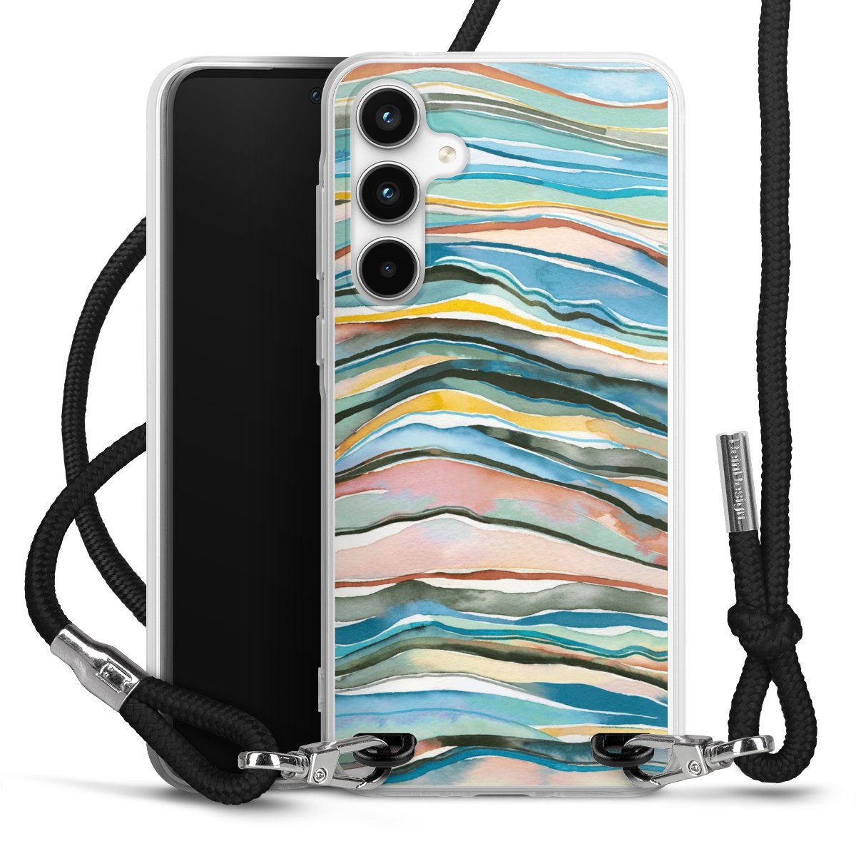 The flexible case is made from a high quality TPU material (thermoplastic Polyurethan). Thanks to its long-lasting and break resistant characteristics, the case is flexible yet consistent in form and has a great grip and feel. The textile strap made from Polyester gives a chic yet casual accent allowing you to carry your phone like a bag or necklace - a practical gadget perfect for your next adventure. The textile strap is about 1.70 meters long and the length can easily be adjusted through the knots. Our Carry Case is available in black, red, pink, grey, mustard, dark green and royal blue. We added a metal fastening to give the product an elegant touch. The ends of the textile strap are covered with metallic end caps to protect them against fraying.