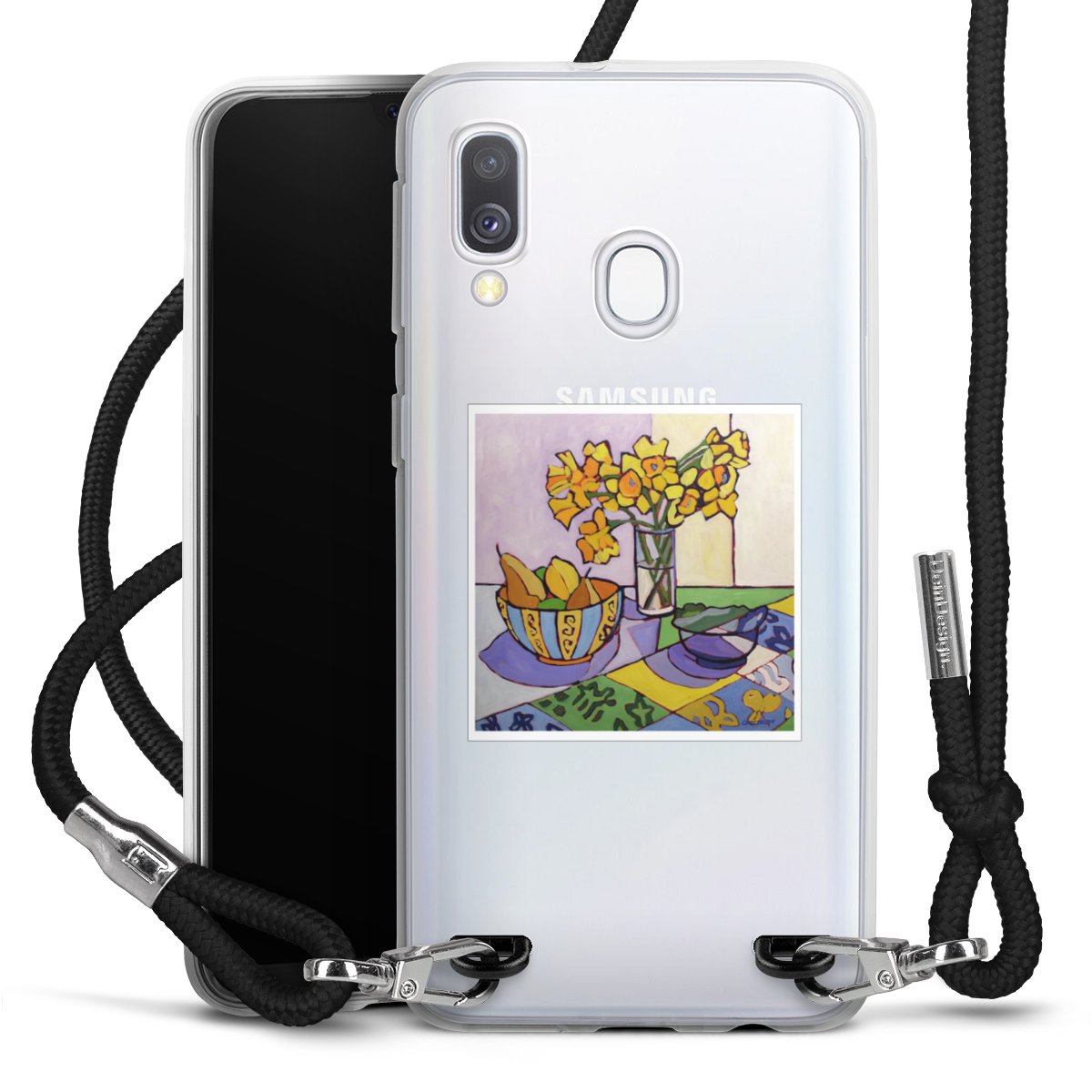 The flexible case is made from a high quality TPU material (thermoplastic Polyurethan). Thanks to its long-lasting and break resistant characteristics, the case is flexible yet consistent in form and has a great grip and feel. The textile strap made from Polyester gives a chic yet casual accent allowing you to carry your phone like a bag or necklace - a practical gadget perfect for your next adventure. The textile strap is about 1.70 meters long and the length can easily be adjusted through the knots. Our Carry Case is available in black, red, pink, grey, mustard, dark green and royal blue. We added a metal fastening to give the product an elegant touch. The ends of the textile strap are covered with metallic end caps to protect them against fraying.