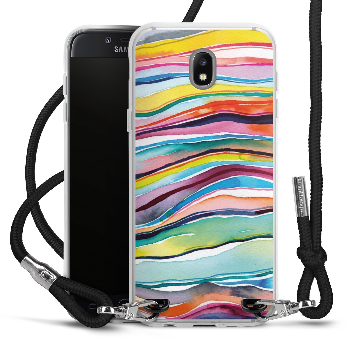 The flexible case is made from a high quality TPU material (thermoplastic Polyurethan). Thanks to its long-lasting and break resistant characteristics, the case is flexible yet consistent in form and has a great grip and feel. The textile strap made from Polyester gives a chic yet casual accent allowing you to carry your phone like a bag or necklace - a practical gadget perfect for your next adventure. The textile strap is about 1.70 meters long and the length can easily be adjusted through the knots. Our Carry Case is available in black, red, pink, grey, mustard, dark green and royal blue. We added a metal fastening to give the product an elegant touch. The ends of the textile strap are covered with metallic end caps to protect them against fraying.