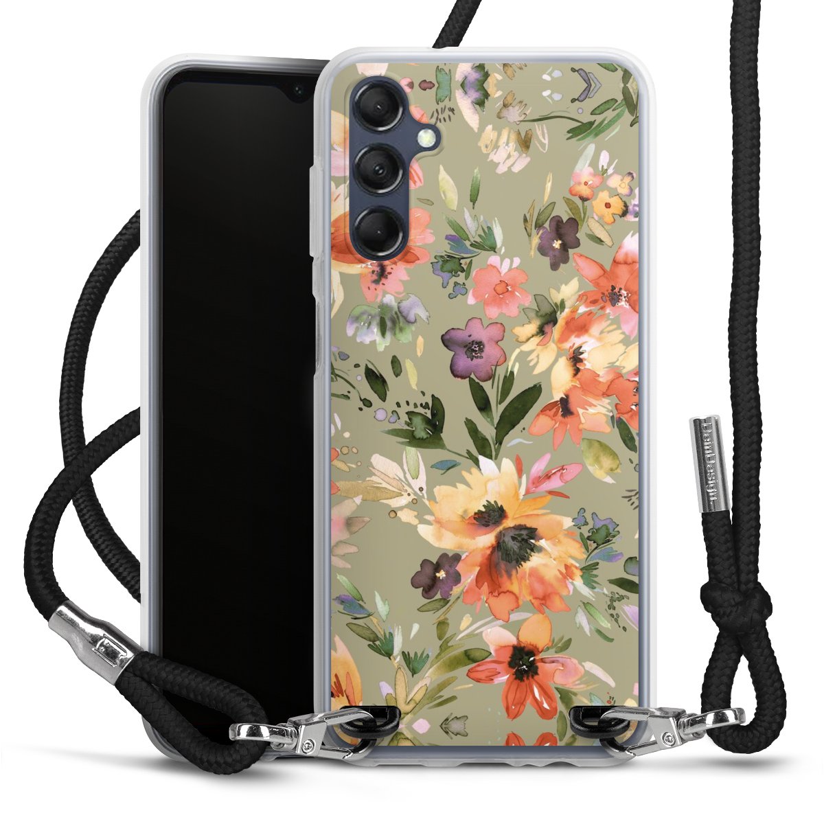 Keep your phone handy at all times, thanks to the flexible silicone case with a textile strap.