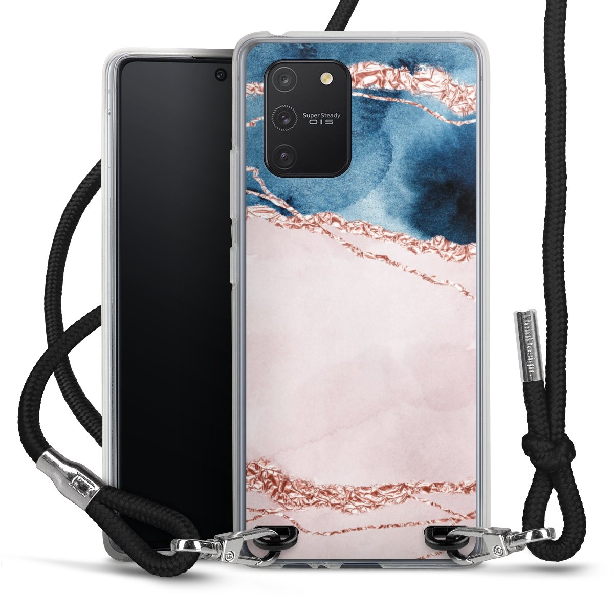 The flexible case is made from a high quality TPU material (thermoplastic Polyurethan). Thanks to its long-lasting and break resistant characteristics, the case is flexible yet consistent in form and has a great grip and feel. The textile strap made from Polyester gives a chic yet casual accent allowing you to carry your phone like a bag or necklace - a practical gadget perfect for your next adventure. The textile strap is about 1.70 meters long and the length can easily be adjusted through the knots. Our Carry Case is available in black, red, pink, grey, mustard, dark green and royal blue. We added a metal fastening to give the product an elegant touch. The ends of the textile strap are covered with metallic end caps to protect them against fraying.