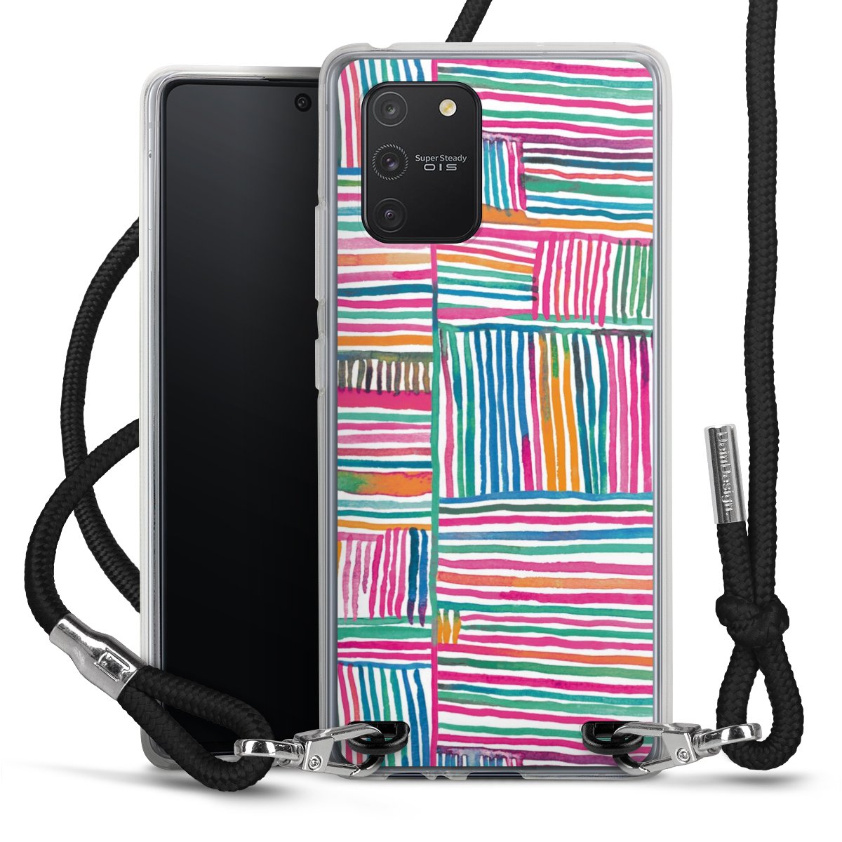 The flexible case is made from a high quality TPU material (thermoplastic Polyurethan). Thanks to its long-lasting and break resistant characteristics, the case is flexible yet consistent in form and has a great grip and feel. The textile strap made from Polyester gives a chic yet casual accent allowing you to carry your phone like a bag or necklace - a practical gadget perfect for your next adventure. The textile strap is about 1.70 meters long and the length can easily be adjusted through the knots. Our Carry Case is available in black, red, pink, grey, mustard, dark green and royal blue. We added a metal fastening to give the product an elegant touch. The ends of the textile strap are covered with metallic end caps to protect them against fraying.
