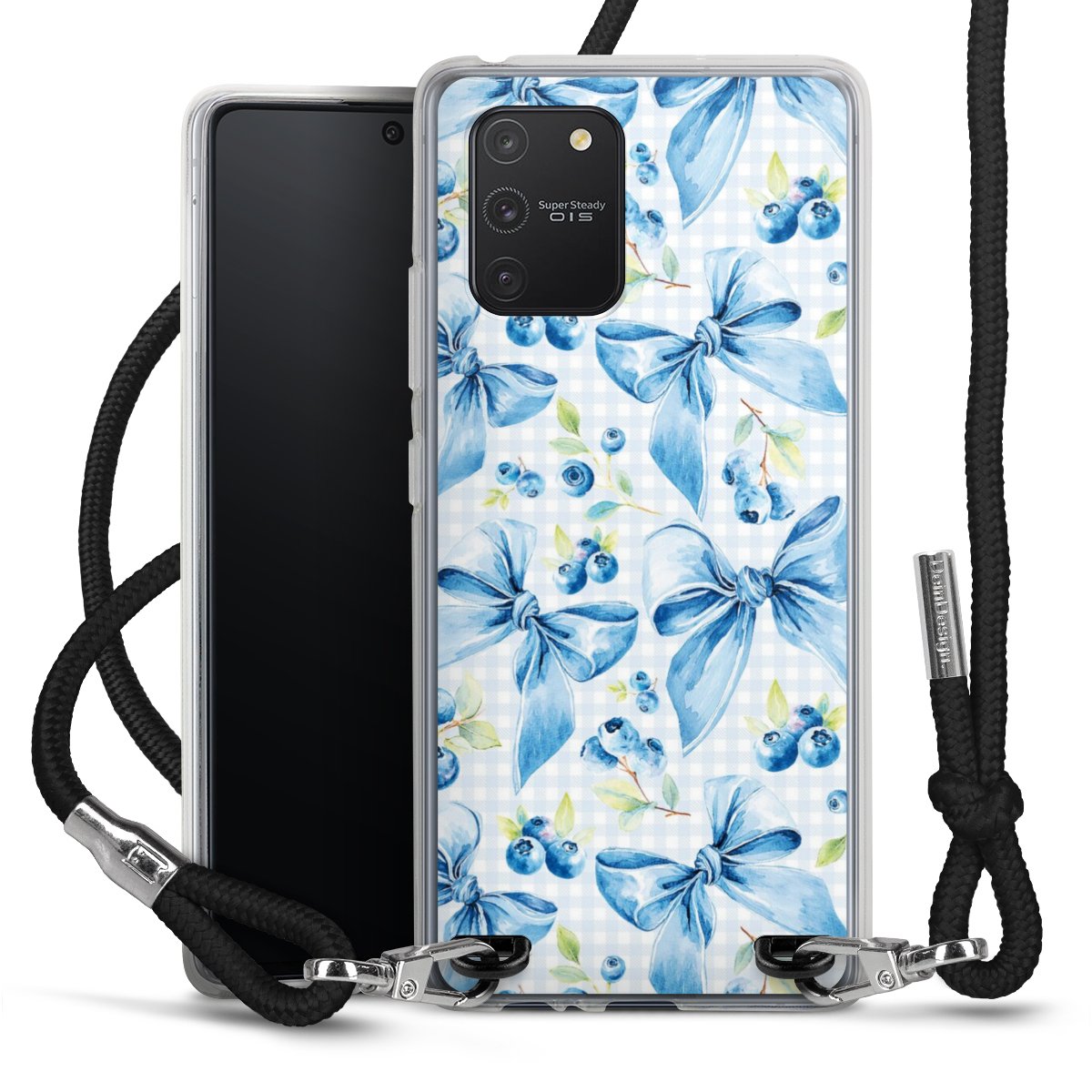 Keep your phone handy at all times, thanks to the flexible silicone case with a textile strap.