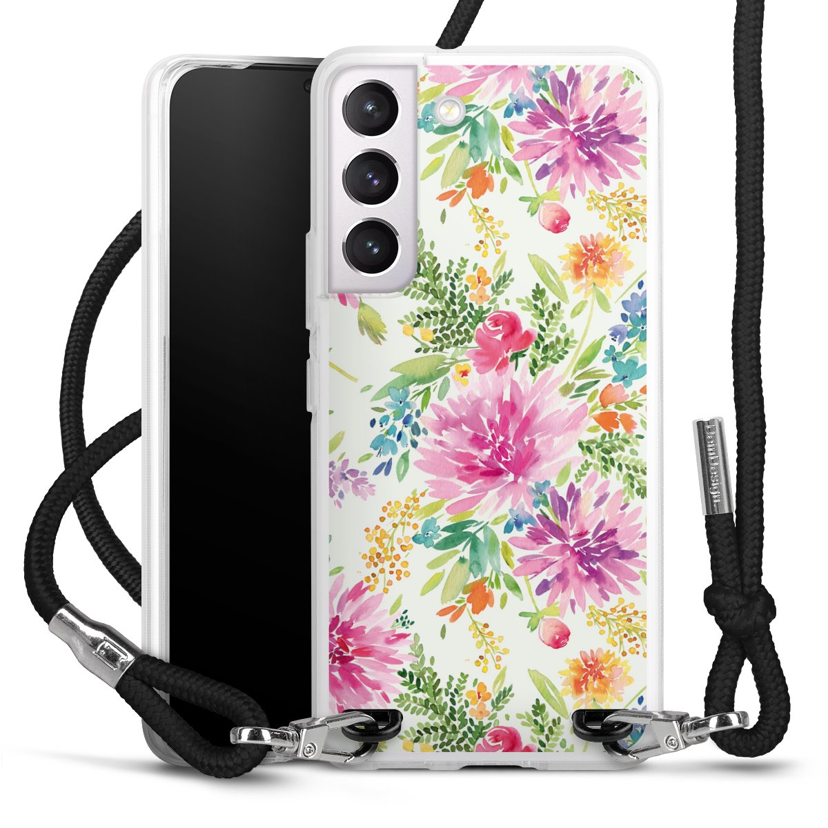 For our Carry Case we are using our advanced direct printing technology. The backside is fully printable, the frame is left unprinted. You can order the phone case without print, printed completely or also with a partial print. Choose one of our exclusive, pre-made shop designs or let your creativity shine and create your very own unique design with your pictures, overlays and text.