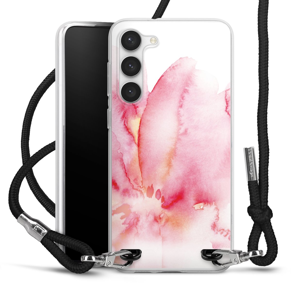 For our Carry Case we are using our advanced direct printing technology. The backside is fully printable, the frame is left unprinted. You can order the phone case without print, printed completely or also with a partial print. Choose one of our exclusive, pre-made shop designs or let your creativity shine and create your very own unique design with your pictures, overlays and text.