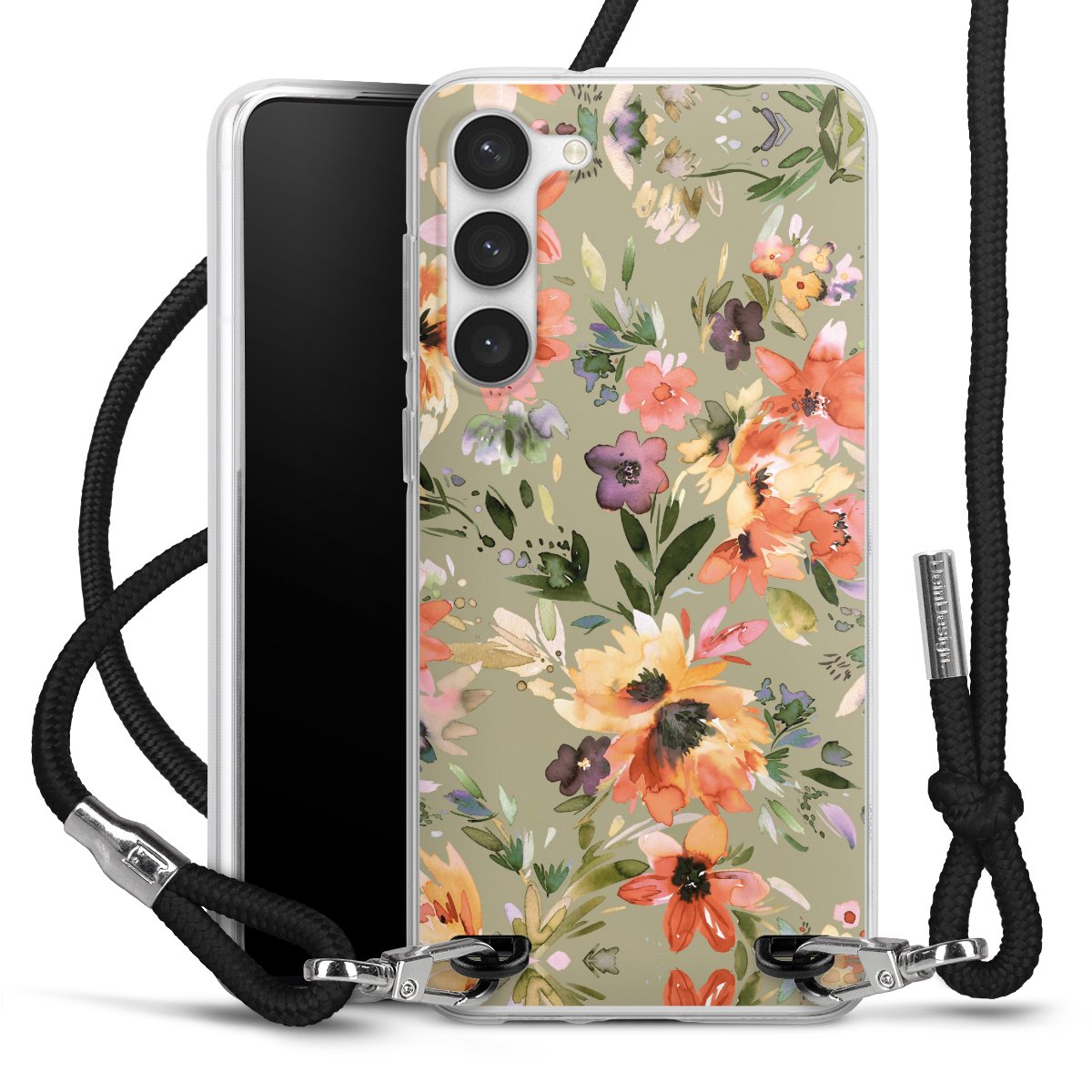 Keep your phone handy at all times, thanks to the flexible silicone case with a textile strap.