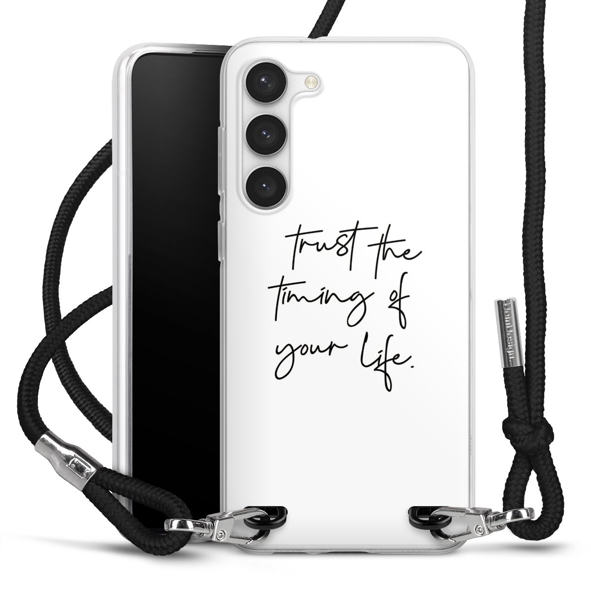 For our Carry Case we are using our advanced direct printing technology. The backside is fully printable, the frame is left unprinted. You can order the phone case without print, printed completely or also with a partial print. Choose one of our exclusive, pre-made shop designs or let your creativity shine and create your very own unique design with your pictures, overlays and text.