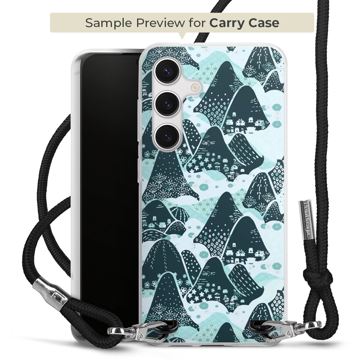 For our Carry Case we are using our advanced direct printing technology. The backside is fully printable, the frame is left unprinted. You can order the phone case without print, printed completely or also with a partial print. Choose one of our exclusive, pre-made shop designs or let your creativity shine and create your very own unique design with your pictures, overlays and text.