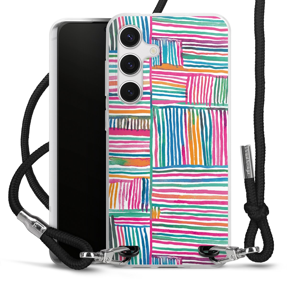 The flexible case is made from a high quality TPU material (thermoplastic Polyurethan). Thanks to its long-lasting and break resistant characteristics, the case is flexible yet consistent in form and has a great grip and feel. The textile strap made from Polyester gives a chic yet casual accent allowing you to carry your phone like a bag or necklace - a practical gadget perfect for your next adventure. The textile strap is about 1.70 meters long and the length can easily be adjusted through the knots. Our Carry Case is available in black, red, pink, grey, mustard, dark green and royal blue. We added a metal fastening to give the product an elegant touch. The ends of the textile strap are covered with metallic end caps to protect them against fraying.