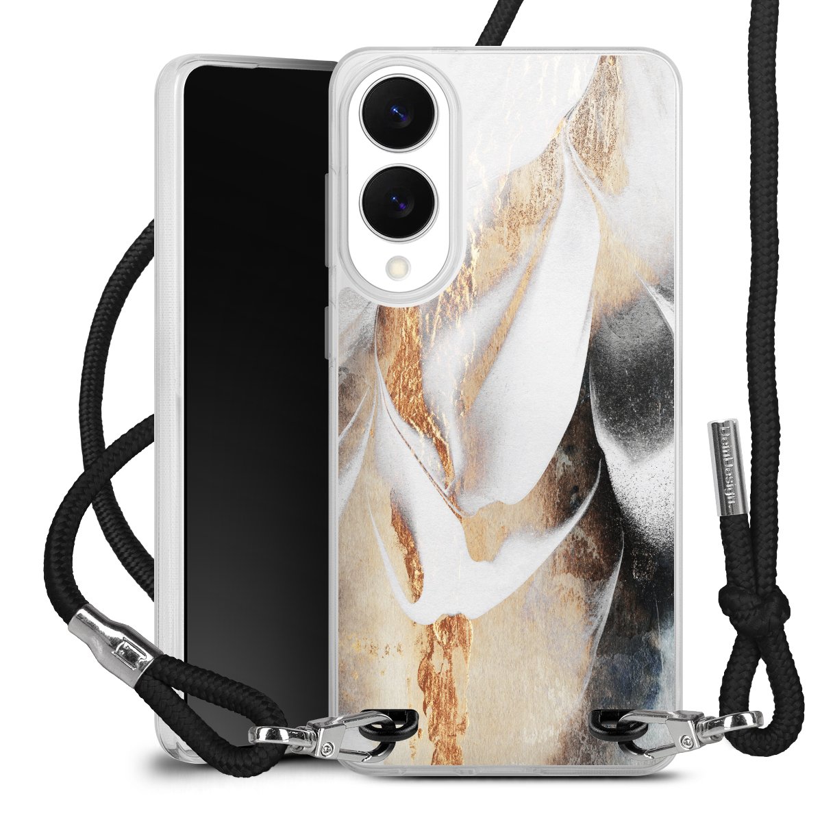 Keep your phone handy at all times, thanks to the flexible silicone case with a textile strap.