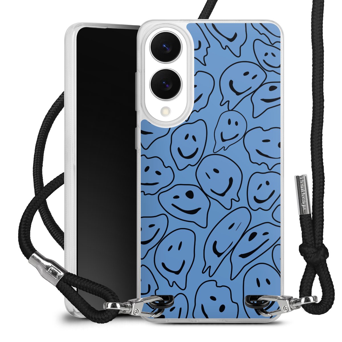 The flexible case is made from a high quality TPU material (thermoplastic Polyurethan). Thanks to its long-lasting and break resistant characteristics, the case is flexible yet consistent in form and has a great grip and feel. The textile strap made from Polyester gives a chic yet casual accent allowing you to carry your phone like a bag or necklace - a practical gadget perfect for your next adventure. The textile strap is about 1.70 meters long and the length can easily be adjusted through the knots. Our Carry Case is available in black, red, pink, grey, mustard, dark green and royal blue. We added a metal fastening to give the product an elegant touch. The ends of the textile strap are covered with metallic end caps to protect them against fraying.