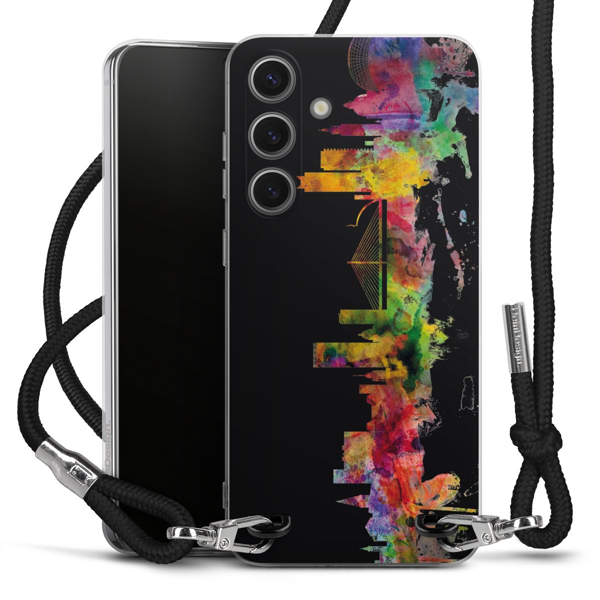 The flexible case is made from a high quality TPU material (thermoplastic Polyurethan). Thanks to its long-lasting and break resistant characteristics, the case is flexible yet consistent in form and has a great grip and feel. The textile strap made from Polyester gives a chic yet casual accent allowing you to carry your phone like a bag or necklace - a practical gadget perfect for your next adventure. The textile strap is about 1.70 meters long and the length can easily be adjusted through the knots. Our Carry Case is available in black, red, pink, grey, mustard, dark green and royal blue. We added a metal fastening to give the product an elegant touch. The ends of the textile strap are covered with metallic end caps to protect them against fraying.