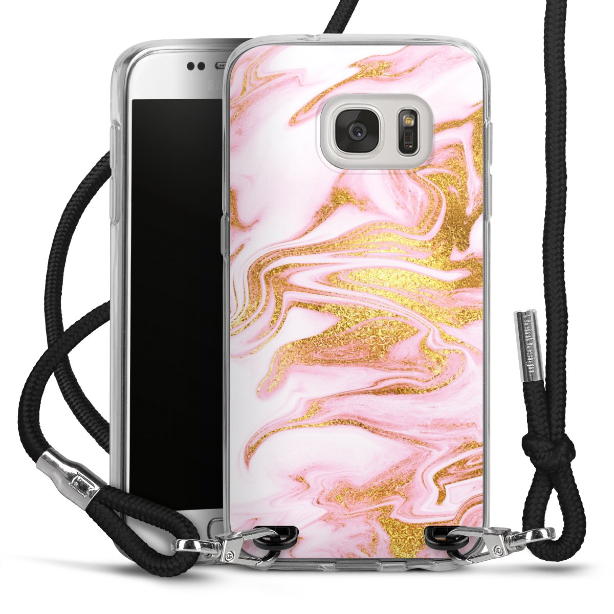 The flexible case is made from a high quality TPU material (thermoplastic Polyurethan). Thanks to its long-lasting and break resistant characteristics, the case is flexible yet consistent in form and has a great grip and feel. The textile strap made from Polyester gives a chic yet casual accent allowing you to carry your phone like a bag or necklace - a practical gadget perfect for your next adventure. The textile strap is about 1.70 meters long and the length can easily be adjusted through the knots. Our Carry Case is available in black, red, pink, grey, mustard, dark green and royal blue. We added a metal fastening to give the product an elegant touch. The ends of the textile strap are covered with metallic end caps to protect them against fraying.