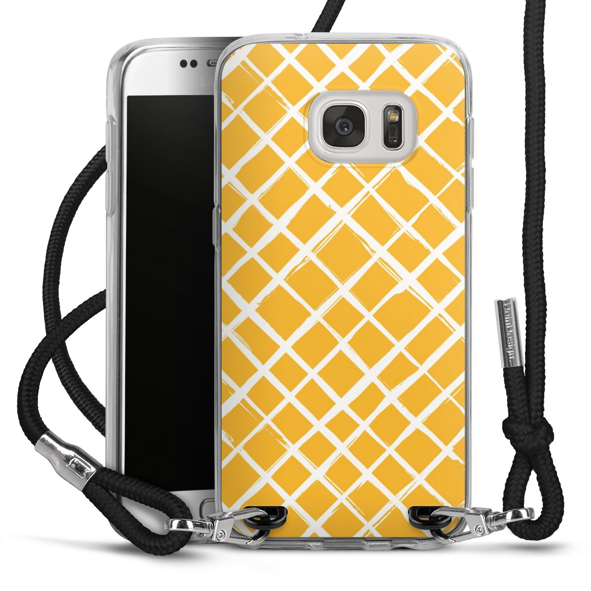 The flexible case is made from a high quality TPU material (thermoplastic Polyurethan). Thanks to its long-lasting and break resistant characteristics, the case is flexible yet consistent in form and has a great grip and feel. The textile strap made from Polyester gives a chic yet casual accent allowing you to carry your phone like a bag or necklace - a practical gadget perfect for your next adventure. The textile strap is about 1.70 meters long and the length can easily be adjusted through the knots. Our Carry Case is available in black, red, pink, grey, mustard, dark green and royal blue. We added a metal fastening to give the product an elegant touch. The ends of the textile strap are covered with metallic end caps to protect them against fraying.