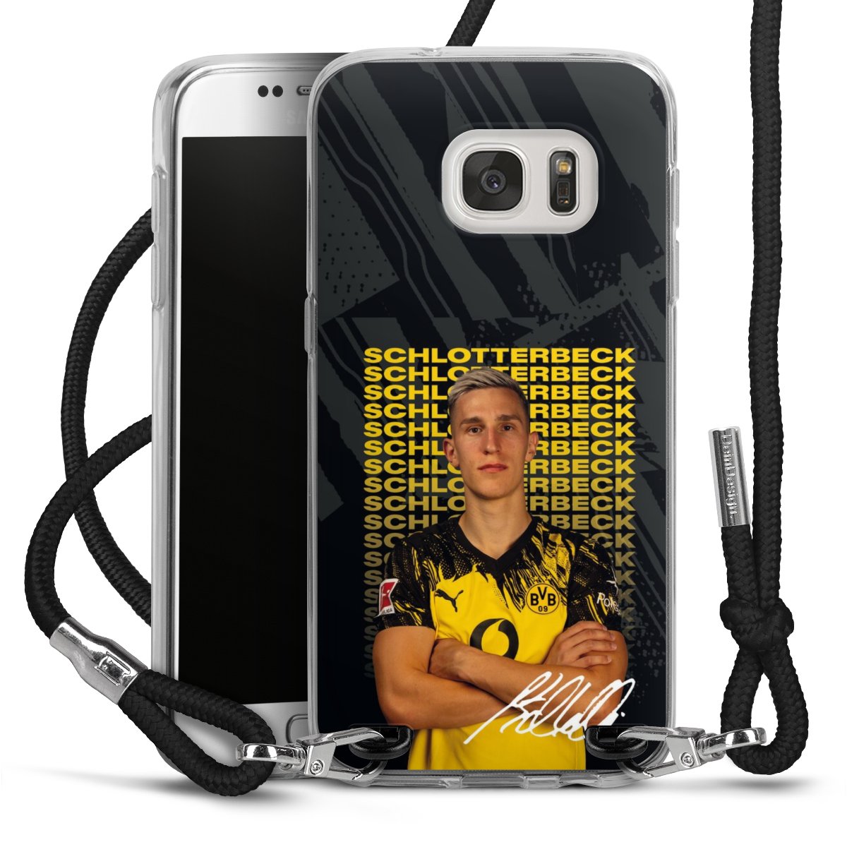The flexible case is made from a high quality TPU material (thermoplastic Polyurethan). Thanks to its long-lasting and break resistant characteristics, the case is flexible yet consistent in form and has a great grip and feel. The textile strap made from Polyester gives a chic yet casual accent allowing you to carry your phone like a bag or necklace - a practical gadget perfect for your next adventure. The textile strap is about 1.70 meters long and the length can easily be adjusted through the knots. Our Carry Case is available in black, red, pink, grey, mustard, dark green and royal blue. We added a metal fastening to give the product an elegant touch. The ends of the textile strap are covered with metallic end caps to protect them against fraying.