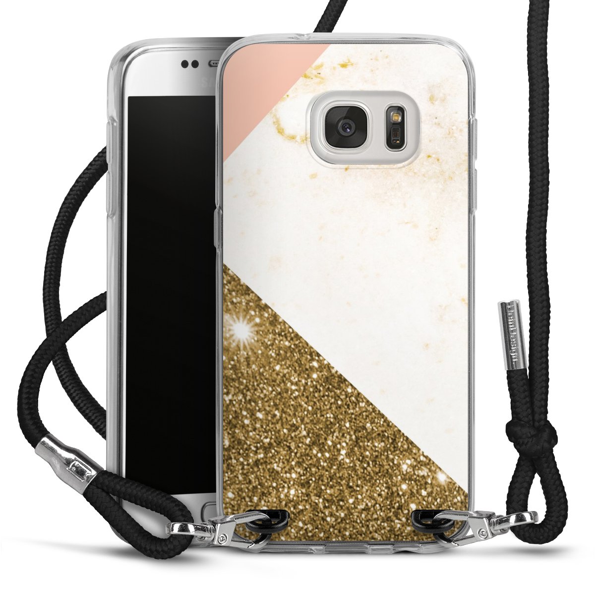 The flexible case is made from a high quality TPU material (thermoplastic Polyurethan). Thanks to its long-lasting and break resistant characteristics, the case is flexible yet consistent in form and has a great grip and feel. The textile strap made from Polyester gives a chic yet casual accent allowing you to carry your phone like a bag or necklace - a practical gadget perfect for your next adventure. The textile strap is about 1.70 meters long and the length can easily be adjusted through the knots. Our Carry Case is available in black, red, pink, grey, mustard, dark green and royal blue. We added a metal fastening to give the product an elegant touch. The ends of the textile strap are covered with metallic end caps to protect them against fraying.