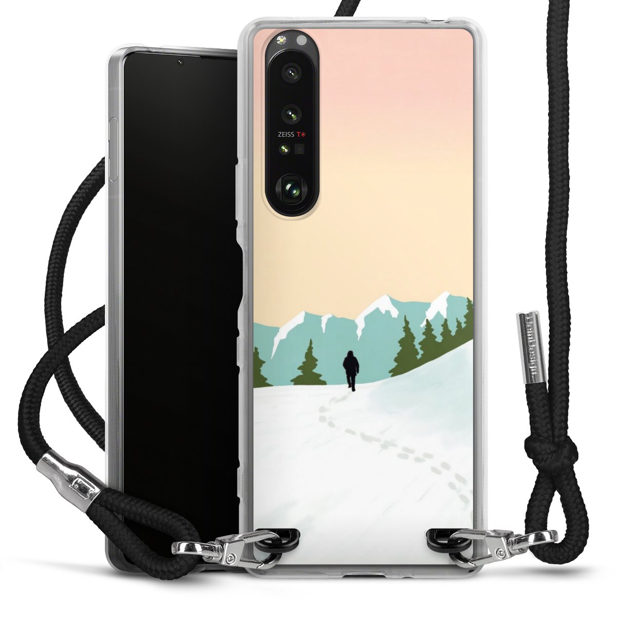 Keep your phone handy at all times, thanks to the flexible silicone case with a textile strap.