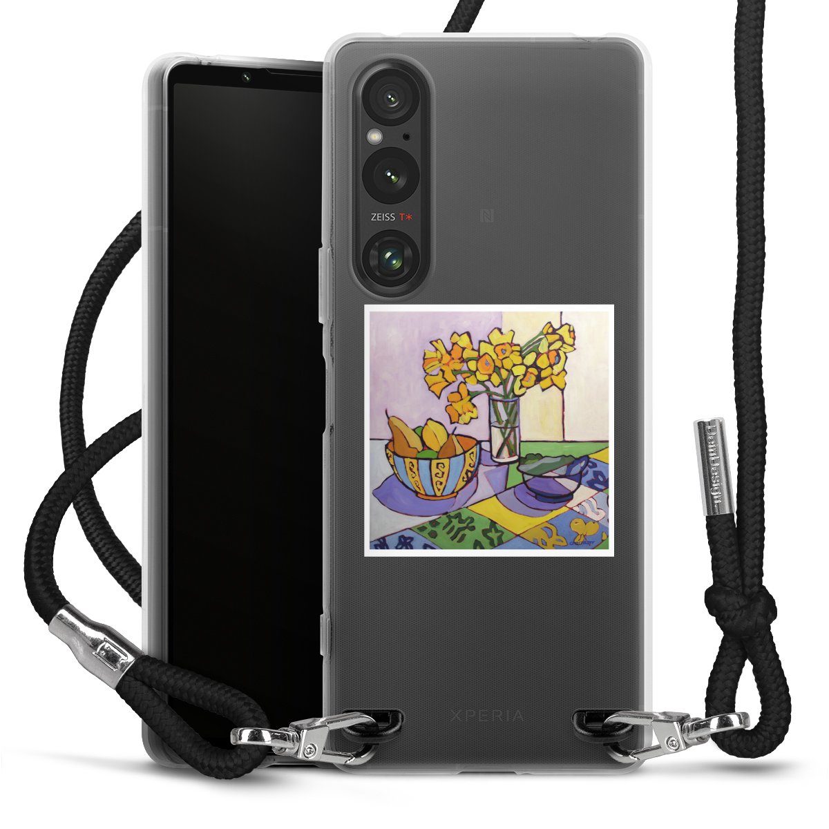 Keep your phone handy at all times, thanks to the flexible silicone case with a textile strap.
