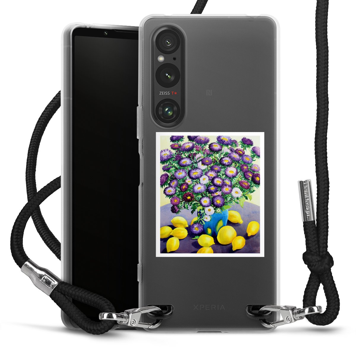 Keep your phone handy at all times, thanks to the flexible silicone case with a textile strap.