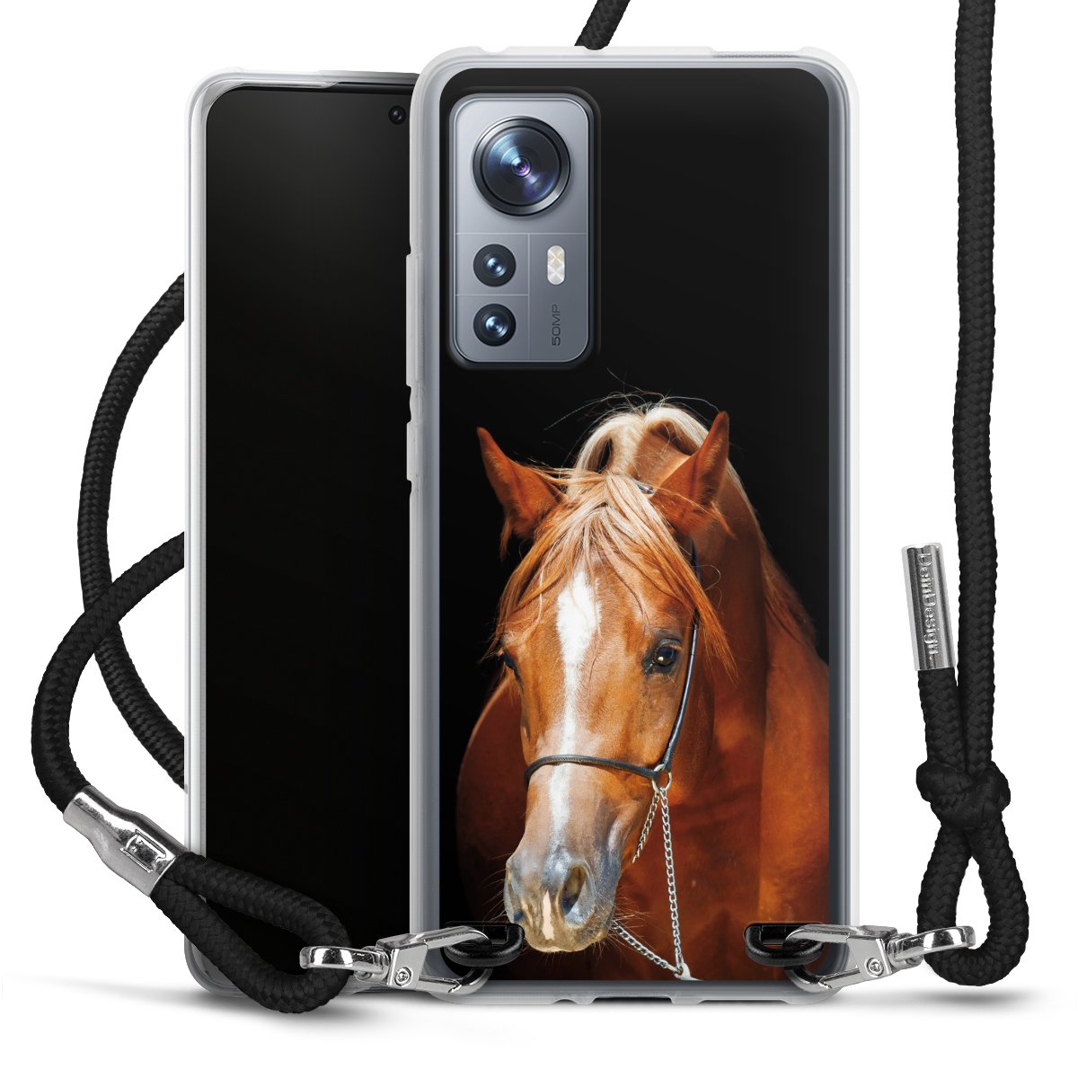 Keep your phone handy at all times, thanks to the flexible silicone case with a textile strap.