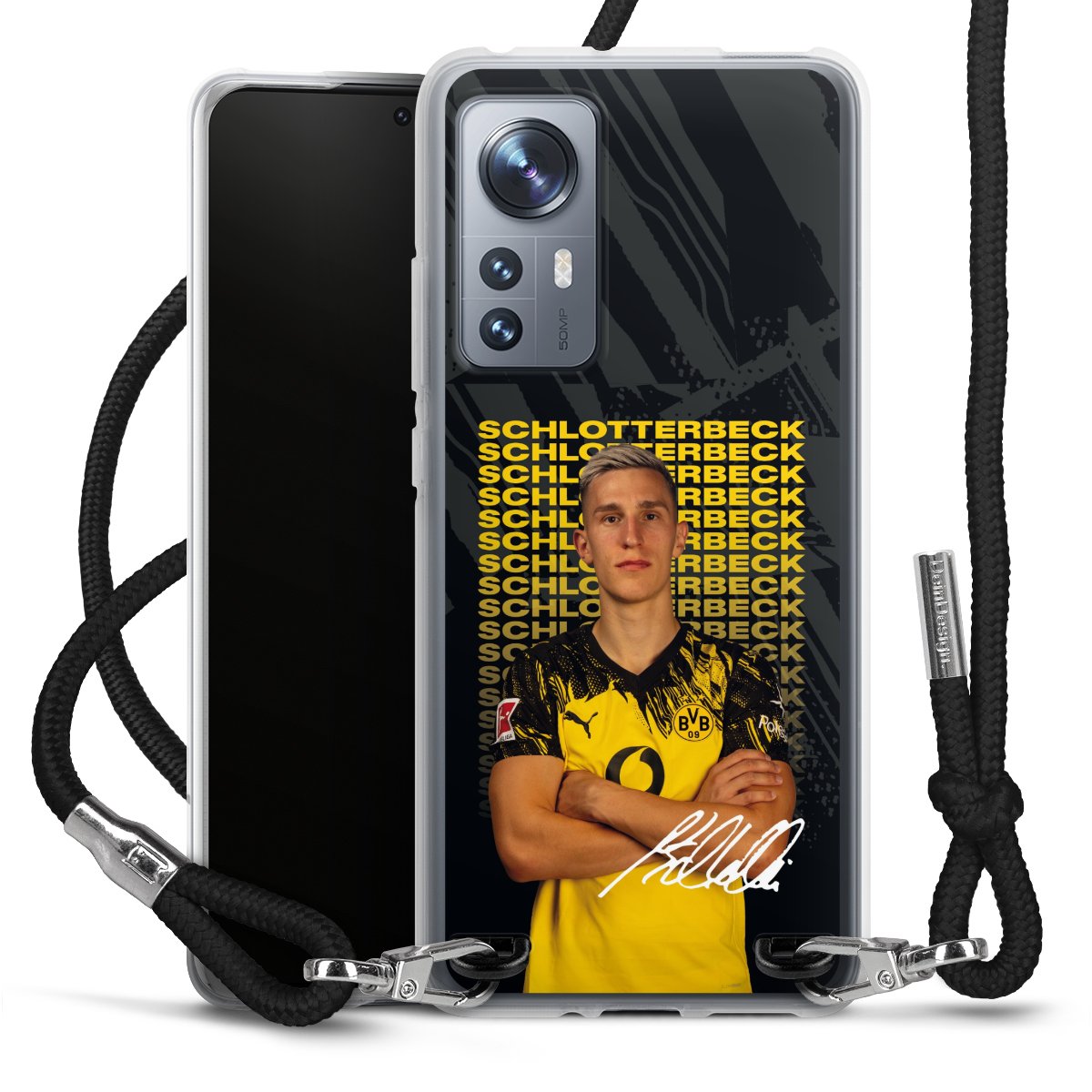Keep your phone handy at all times, thanks to the flexible silicone case with a textile strap.