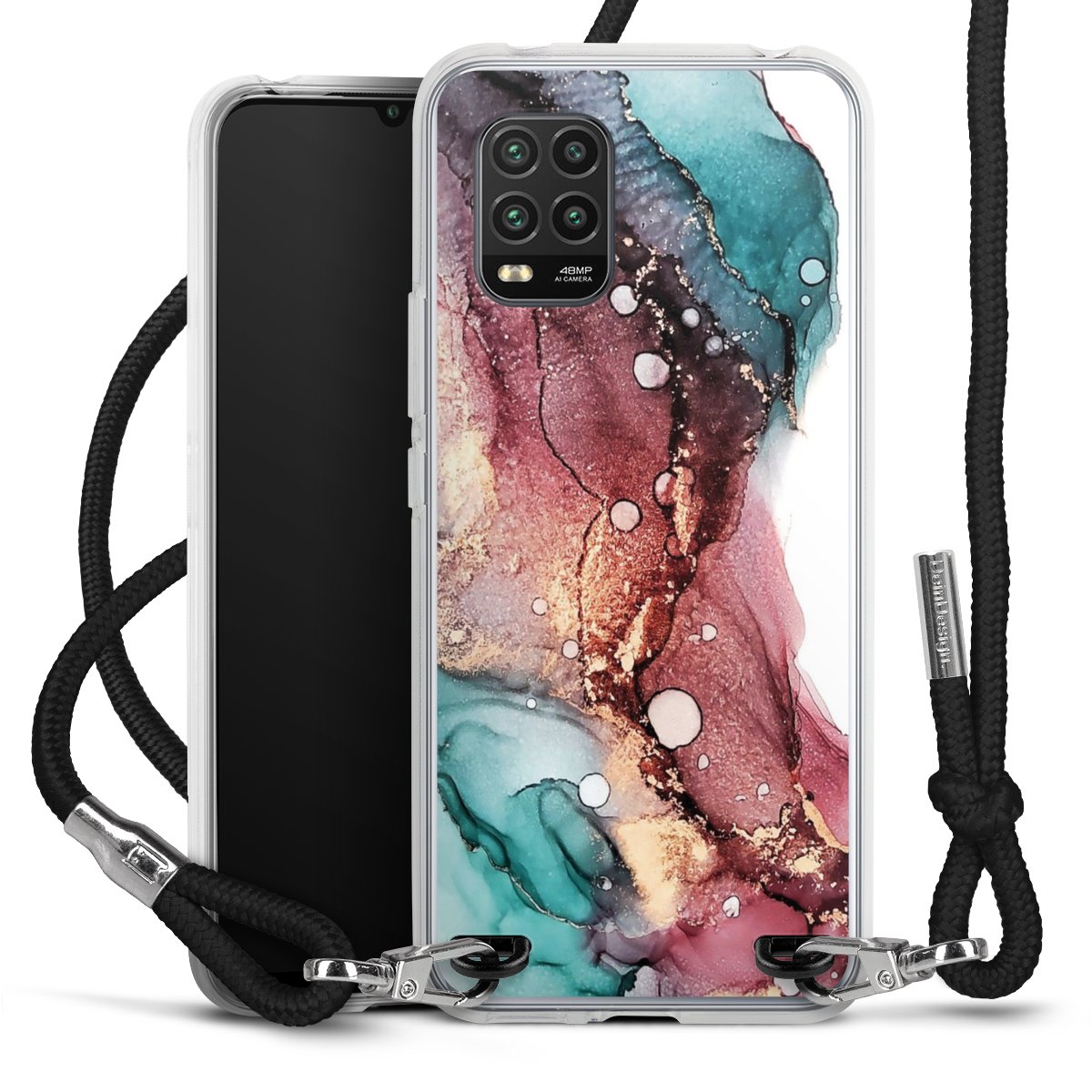 Keep your phone handy at all times, thanks to the flexible silicone case with a textile strap.